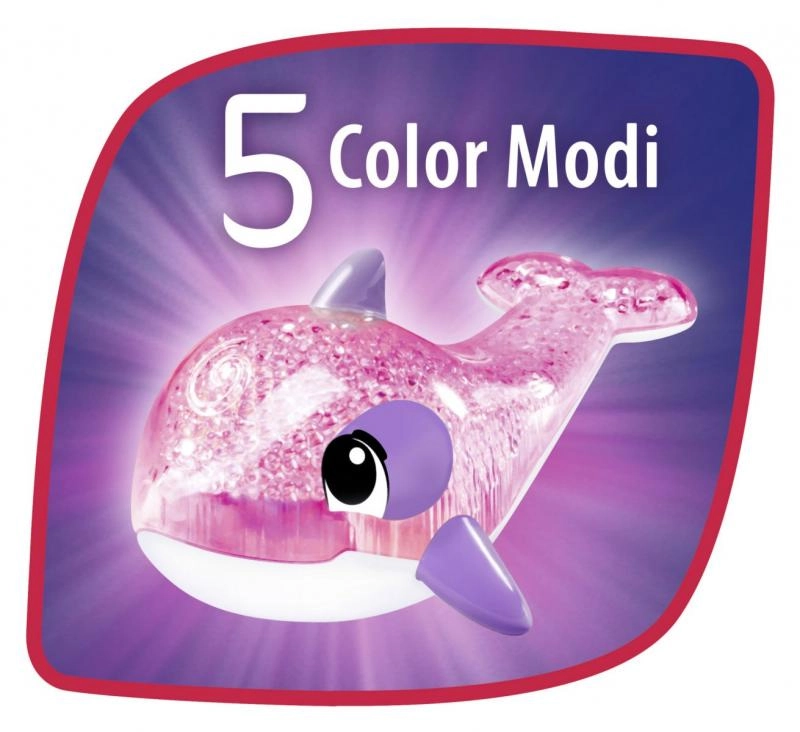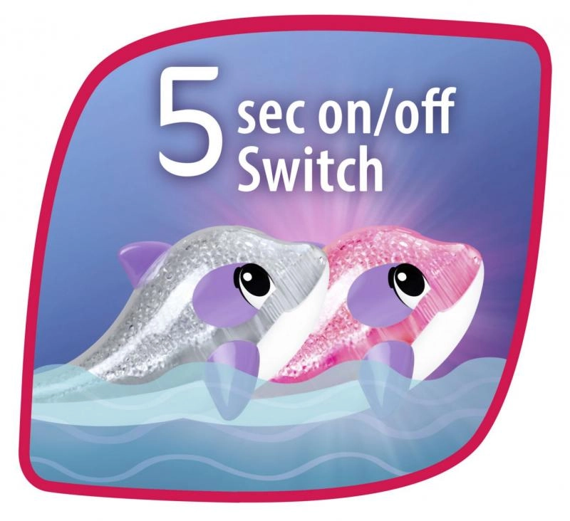 Αυτό το δελφίνι είναι αγαπητό χάρη στο μωβ σώμα του που καλύπτεται με ασημένια λαμπερή επίστρωση. Ένας αισθητήρας κάτω από το ουραίο πτερύγιο επιτρέπει στο δελφίνι να λάμπει με χρώματα ουράνιου τόξου σε κάθε άγγιγμα. Το λαμπυρίζον δελφίνι είναι εξαιρετικό όχι μόνο για παιχνίδι, αλλά και ως παιχνίδι μπάνιου, καθώς μπορεί να επιπλέει στην επιφάνεια και να φωτίζει κάτω από το νερό.