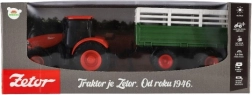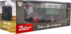 Το κόκκινο τρακτέρ σε σχεδίαση ZETOR με πράσινο τρέιλερ αποσπάται εύκολα για διαφορετικές αγροτικές εργασίες και ακόμη πιο διασκεδαστικό παιχνίδι.