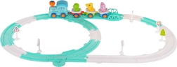 Αυτή η διαδραστική σιδηροτροχιά με δεινόσαυρους θα φέρει πολλή χαρά στο παιδικό δωμάτιο. Η μηχανή με 2× AA μπαταρίες ανάβει και παίζει μελωδίες, ενώ η αμαξοστοιχία τρέχει πάνω στις πολύχρωμες ράγες. Κάθε ένα από τα 3 βαγονάκια αποσπάται εύκολα και οι φιγούρες δεινοσαύρων αφαιρούνται για αυτόνομο παιχνίδι.