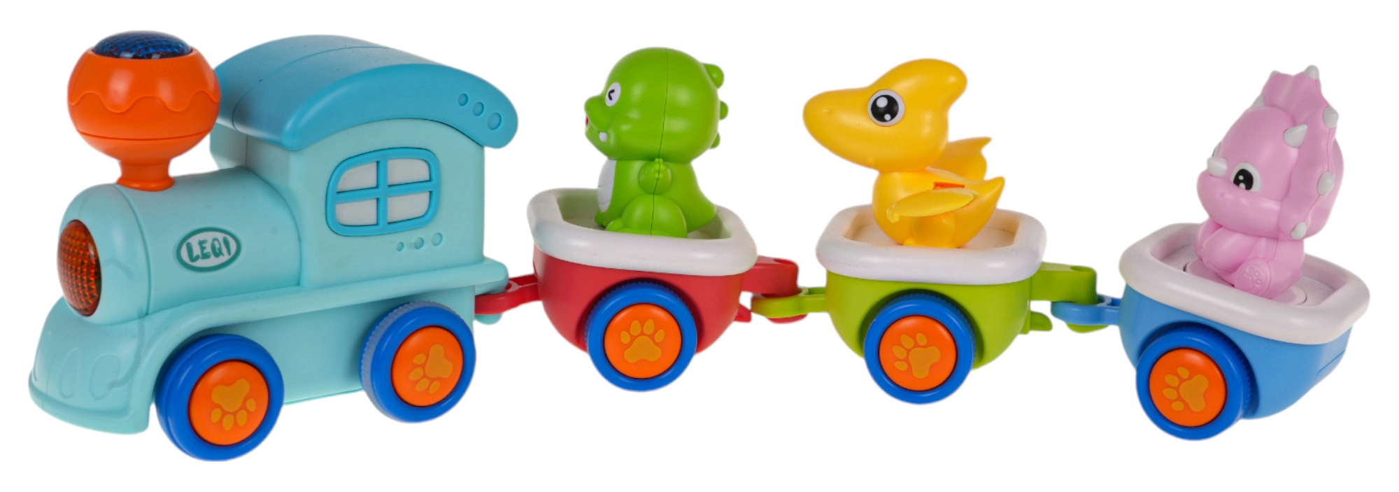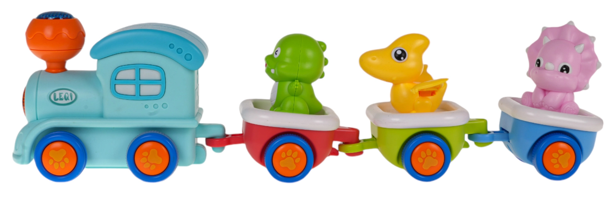 Τρία αποσπώμενα βαγονάκια με αφαιρούμενες φιγούρες δεινοσαύρων ενθαρρύνουν δημιουργικές ιστορίες και ανεξάρτητο παιχνίδι.