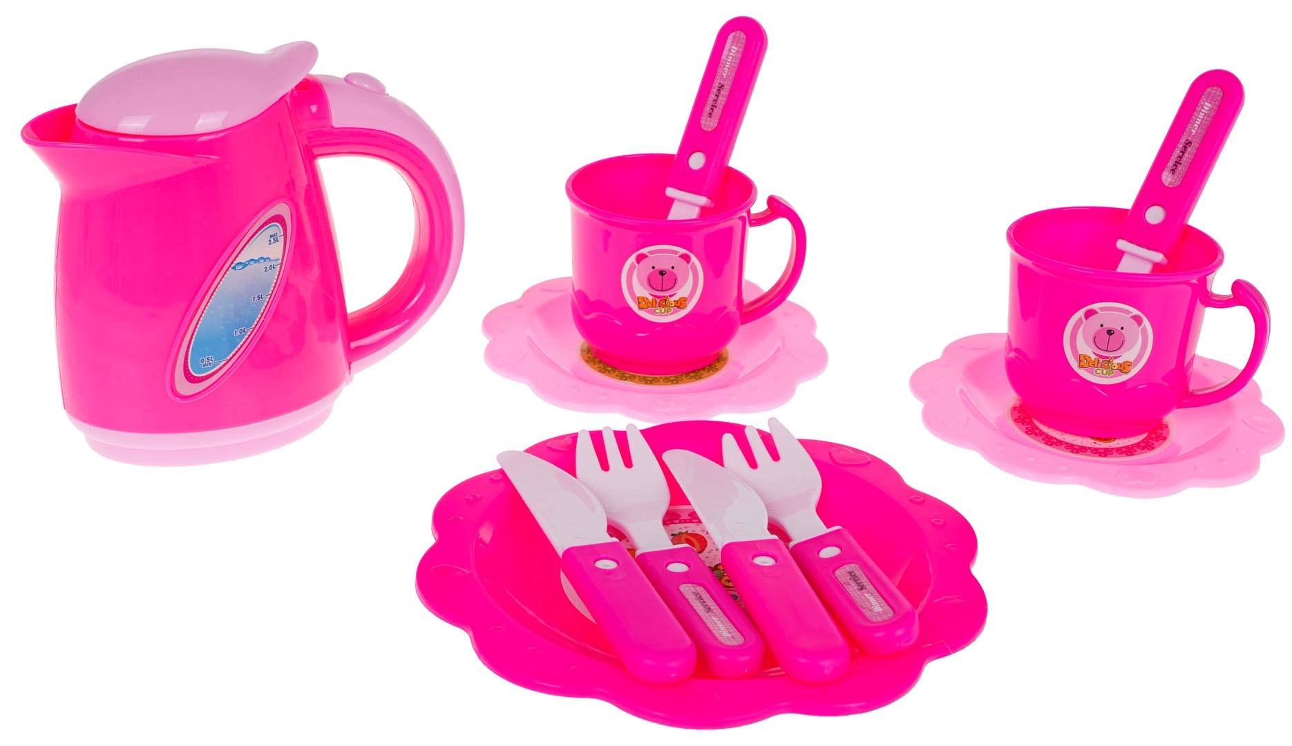 Η τσαγιέρα, τα φλιτζάνια με κουταλάκια, τα πιατάκια και τα μαχαιροπήρουνα μεταμορφώνουν το παιδικό δωμάτιο σε σαλόνι τσαγιού. Ιδανικό για παιχνίδια ρόλων με καλεσμένους και γιορτές γενεθλίων.