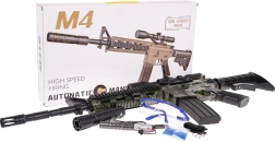 Ανακαλύψτε δυνατή διασκέδαση με την ρεαλιστική καραμπίνα M4 για ζελατινώδεις σφαίρες για εφήβους από 14 ετών. Το όπλο προσφέρει χειροκίνητη και αυτόματη λειτουργία βολής, οπτικό σκοπευτικό με zoom και πλούσια αξεσουάρ συμπεριλαμβανομένου σιγαστήρα, γεμιστήρα και προστατευτικών γυαλιών. Οι ζελατινώδεις σφαίρες σπάνε κατά την πρόσκρουση και είναι ασφαλείς, ενώ η τροφοδοσία παρέχεται από επαναφορτιζόμενη μπαταρία 7,4 V με φόρτιση USB.