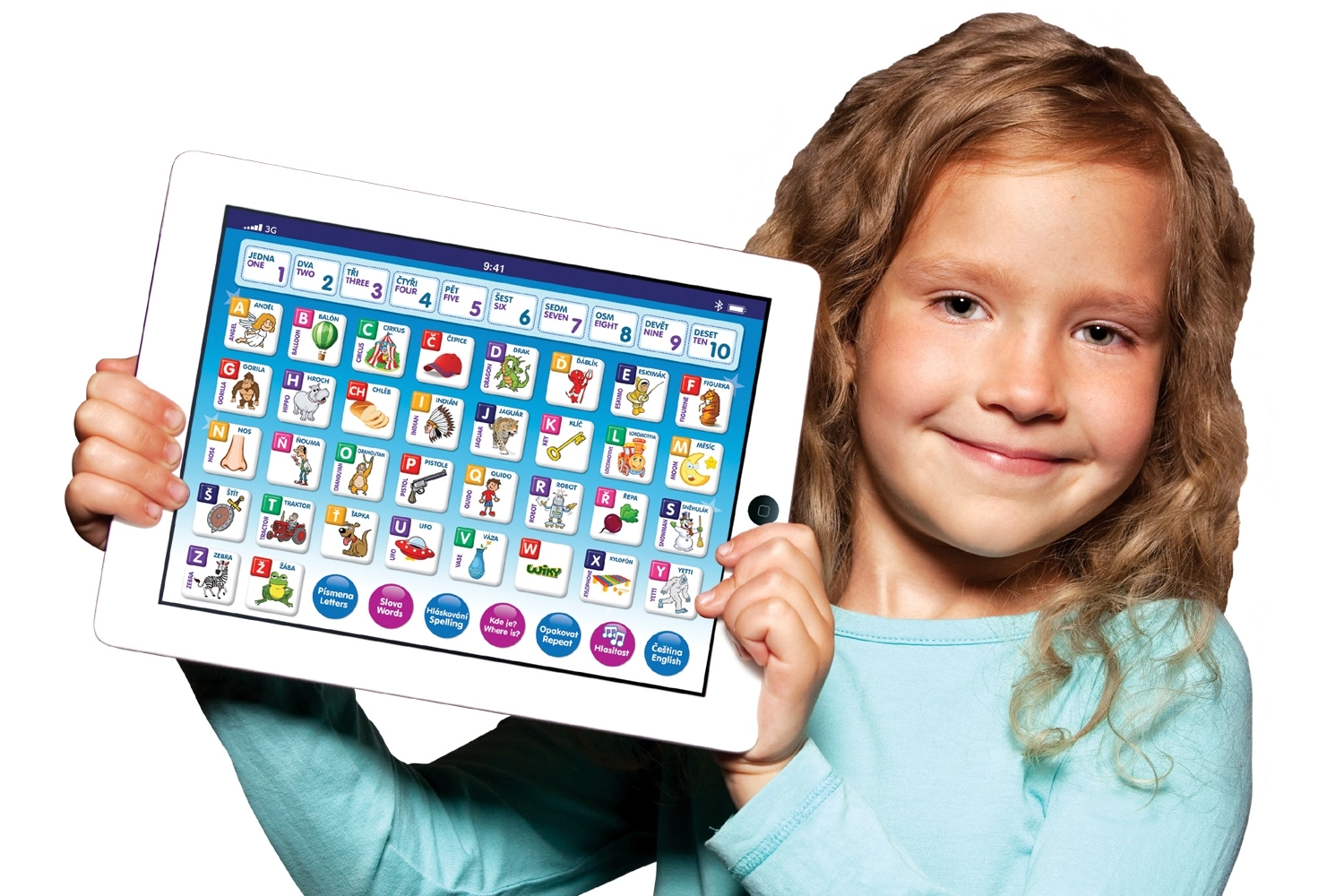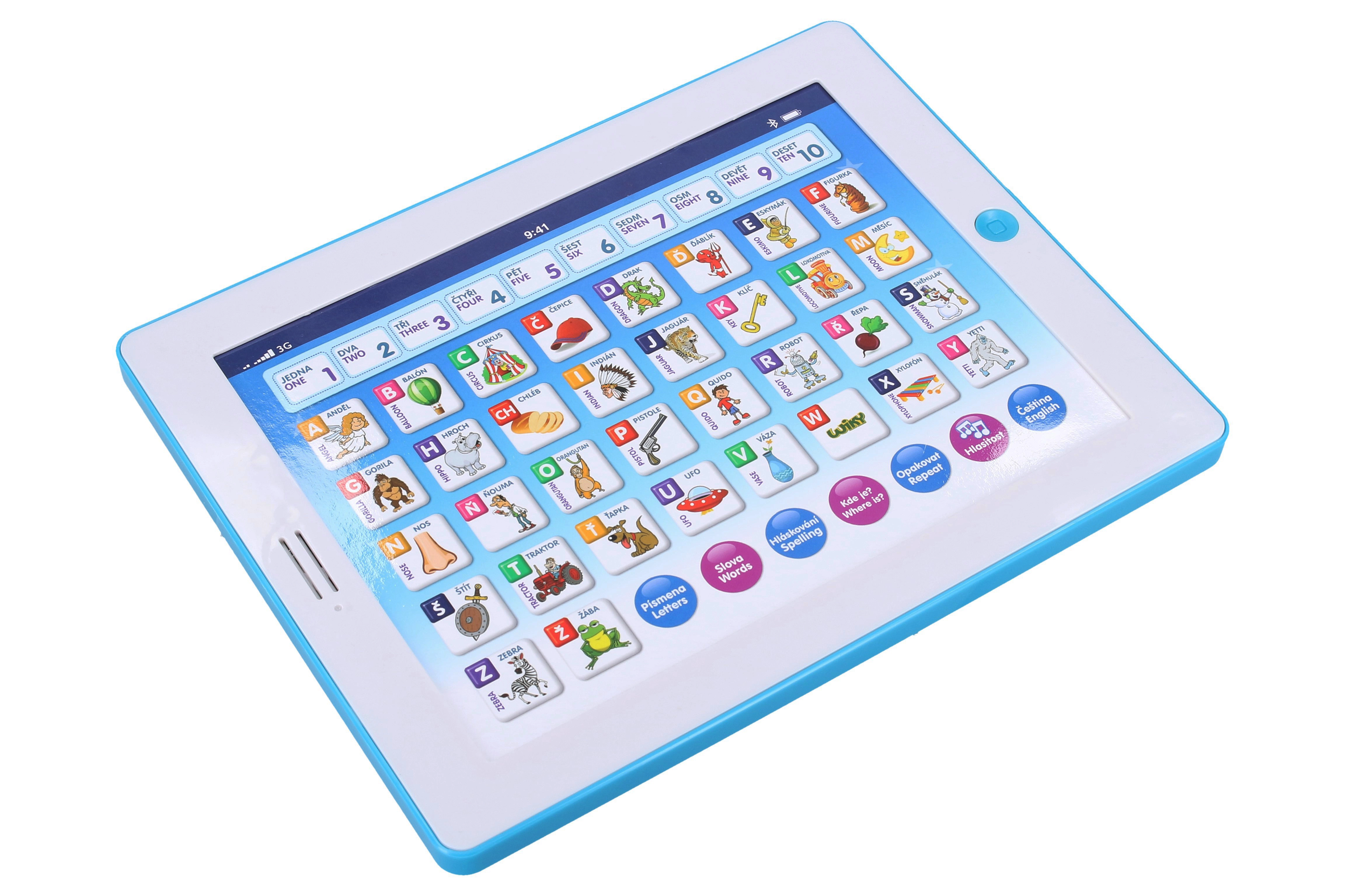 Διασκεδαστικό και εκπαιδευτικό παιδικό tablet για μικρούς εξερευνητές από 3 ετών. Διδάσκει σε τσέχικα και αγγλικά, βοηθά να κατακτήσουν μέτρηση από το 1 έως το 10, αλφάβητο και συλλαβισμό. Περιλαμβάνει διασκεδαστικά παιχνίδια με γράμματα, λέξεις και αριθμούς και αναπαράγει μελωδίες.