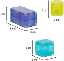 Διάφορα σχήματα και χρώματα επιτρέπουν τη δημιουργία από απλούς πύργους μέχρι σύνθετα 3D μοντέλα κάστρων, σπιτιών ή οχημάτων.