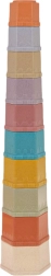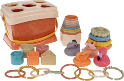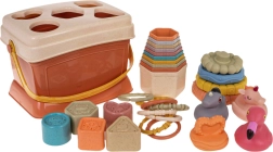 Το σετ περιλαμβάνει σχήματα κατάλληλα για κατασκευή και ταξινόμηση, κάτι που βοηθά στην ανάπτυξη της λεπτής κινητικότητας. Τα παιδιά μπορούν να δοκιμάσουν να στήνουν πυργάκια ή να δημιουργούν διάφορες κατασκευές. Όλα τα κομμάτια μπορούν να αποθηκευτούν εύκολα στο πρακτικό κουτί μετά το παιχνίδι, κάτι που διδάσκει τα παιδιά να διατηρούν τον χώρο τακτοποιημένο.