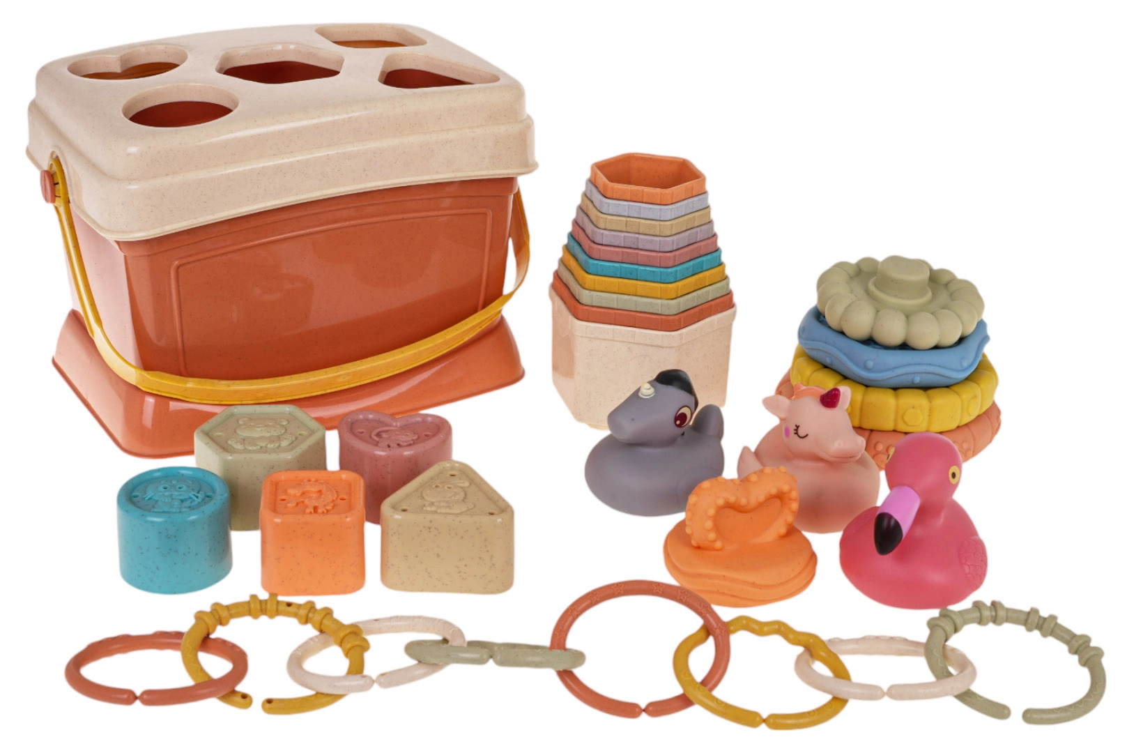 Το παιδικό σετ με σχήματα και ταξινομητή είναι ένα εξαιρετικό εκπαιδευτικό σετ για παιδιά από 6 μηνών. Αναπτύσσει τη φαντασία των παιδιών και τα διδάσκει να αναγνωρίζουν χρώματα και σχήματα. Κάθε στοιχείο του σετ έχει σχεδιαστεί ώστε με τα έντονα χρώματα και τα ενδιαφέροντα σχήματα να τραβά την προσοχή των παιδιών και να τα ενθαρρύνει στο παιχνίδι.