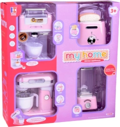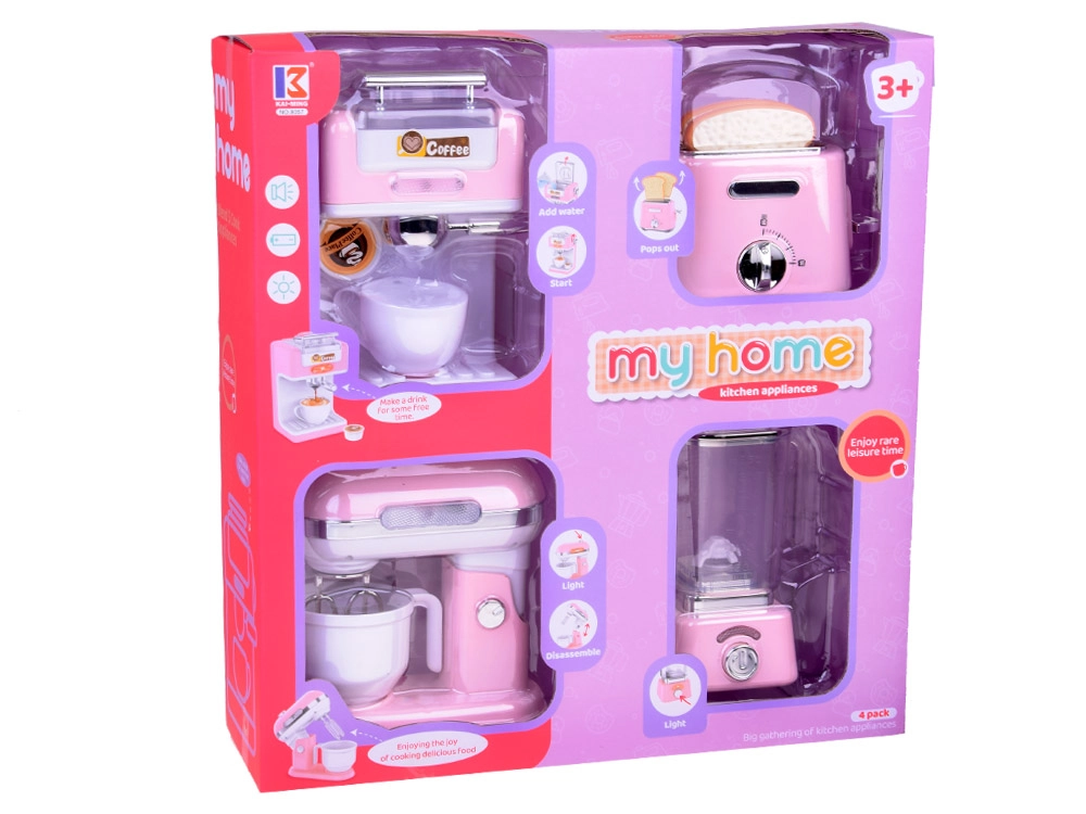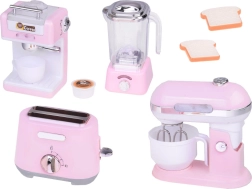 Το σετ μικρών οικιακών συσκευών κουζίνας φέρνει στην παιδική σας κουζίνα κομψότητα και λειτουργικότητα. Κατασκευασμένο από ποιοτικό πλαστικό με λεπτομέρειες που μιμούνται άριστα τις πραγματικές συσκευές. Η απαλή ροζ απόχρωση με λευκά και επιχρωμιωμένα στοιχεία προσδίδει στα παιχνίδια γοητεία και στυλ.