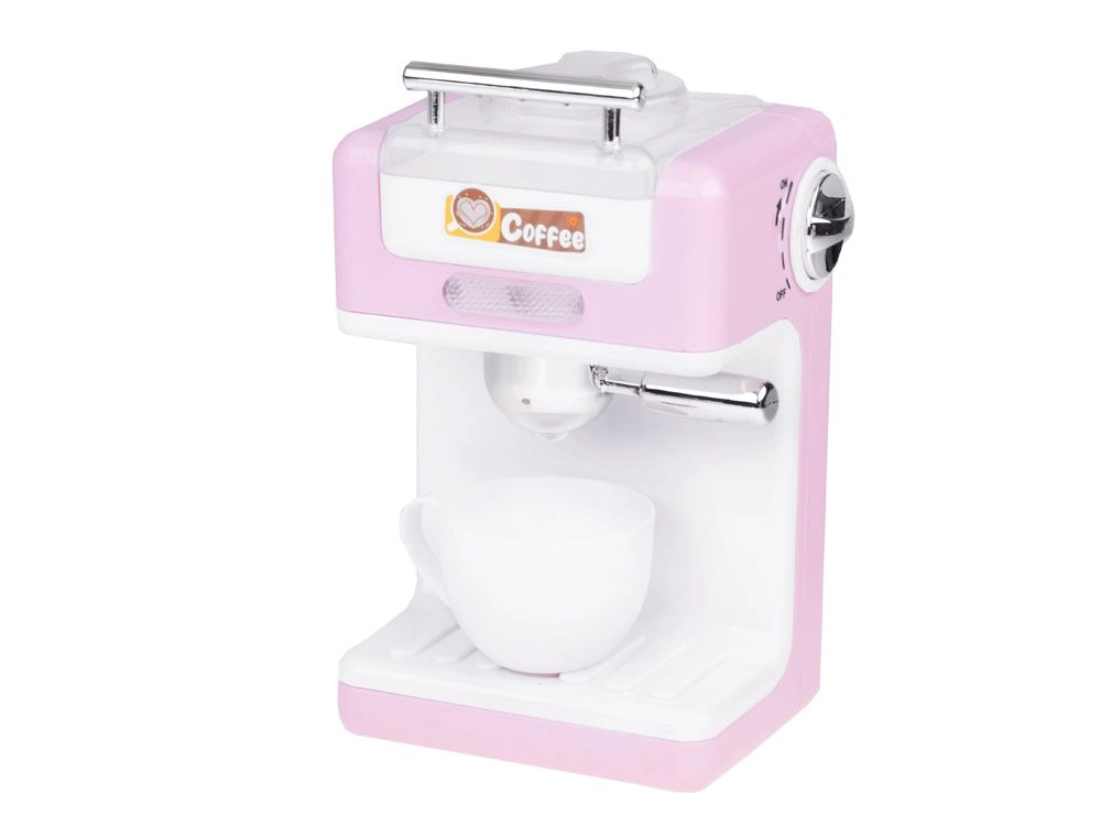 Η καφετιέρα διαθέτει περιστροφικό επιλογέα που ενεργοποιεί ηχητικό εφέ και ανάβει κόκκινη λυχνία. Περιλαμβάνει περιστρεφόμενο δοχείο και πρακτικό χώρο αποθήκευσης. Τροφοδοτείται από 2 μπαταρίες AAA.