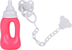 Στη συσκευασία θα βρείτε ό,τι χρειάζεται για παιχνίδι «μαμάς»: ροζ μπουκαλάκι και πιπίλα με πρακτική αλυσίδα και κλιπ ώστε να μην χάνεται. Η συνολική εμφάνιση είναι ιδιαίτερα εντυπωσιακή και προσκαλεί σε αγκαλιές και καθημερινό παιχνίδι.