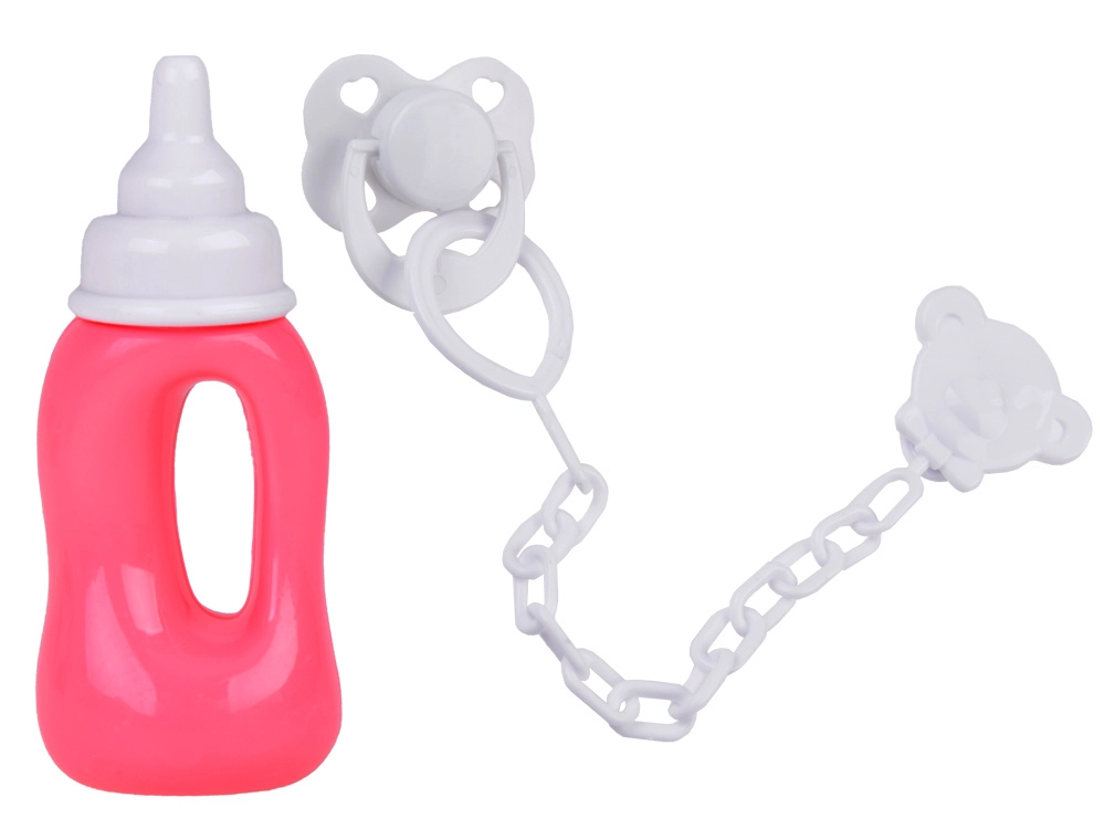 Περιλαμβάνονται ροζ μπουκαλάκι και λευκή πιπίλα με αλυσίδα και κλιπ – αξεσουάρ που ενισχύουν το ρεαλιστικό παιχνίδι φροντίδας.