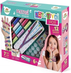 Αυτό το δημιουργικό σετ για κατασκευή βραχιολιών είναι ιδανική επιλογή για παιδιά που αγαπούν τις κατασκευές, τα χρώματα και τα αξεσουάρ μόδας. Με τον οργανωμένο αργαλειό το πλέξιμο είναι εύκολο και διασκεδαστικό ακόμη και για αρχάριους. Με τις κλωστές και τα αξεσουάρ τα παιδιά μπορούν να φτιάξουν έως 12 βραχιολάκια σε διάφορα στυλ και χρώματα – από απλές ρίγες μέχρι ευφάνταστα σχέδια με αυτοκόλλητα.