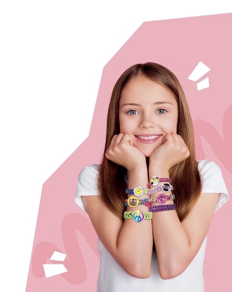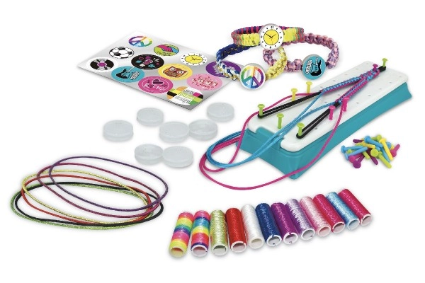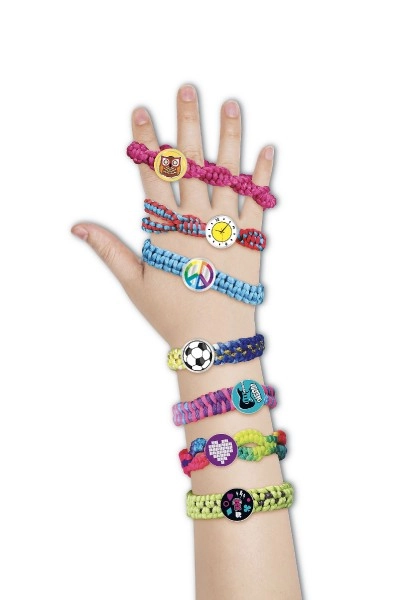 Χάρη στο πλούσιο περιεχόμενο με κλωστές, συνδετικούς κουμπωτήρες και αυτοκόλλητα, θα φτιάξετε ολόκληρη συλλογή πολύχρωμων βραχιολιών.