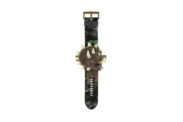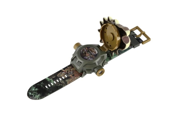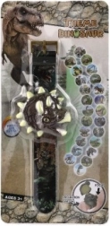 Διασκεδαστικό παιδικό ρολόι με θέμα δεινόσαυρο που συνδυάζει ψηφιακή ένδειξη ώρας και ενσωματωμένο προβολέα, ο οποίος προβάλλει την εικόνα ενός δεινοσαύρου σε τοίχο ή οροφή. Χάρη στο εύκολα ρυθμιζόμενο πλαστικό λουράκι φοριέται άνετα και είναι ιδανικό για μικρούς εξερευνητές από 3 ετών.