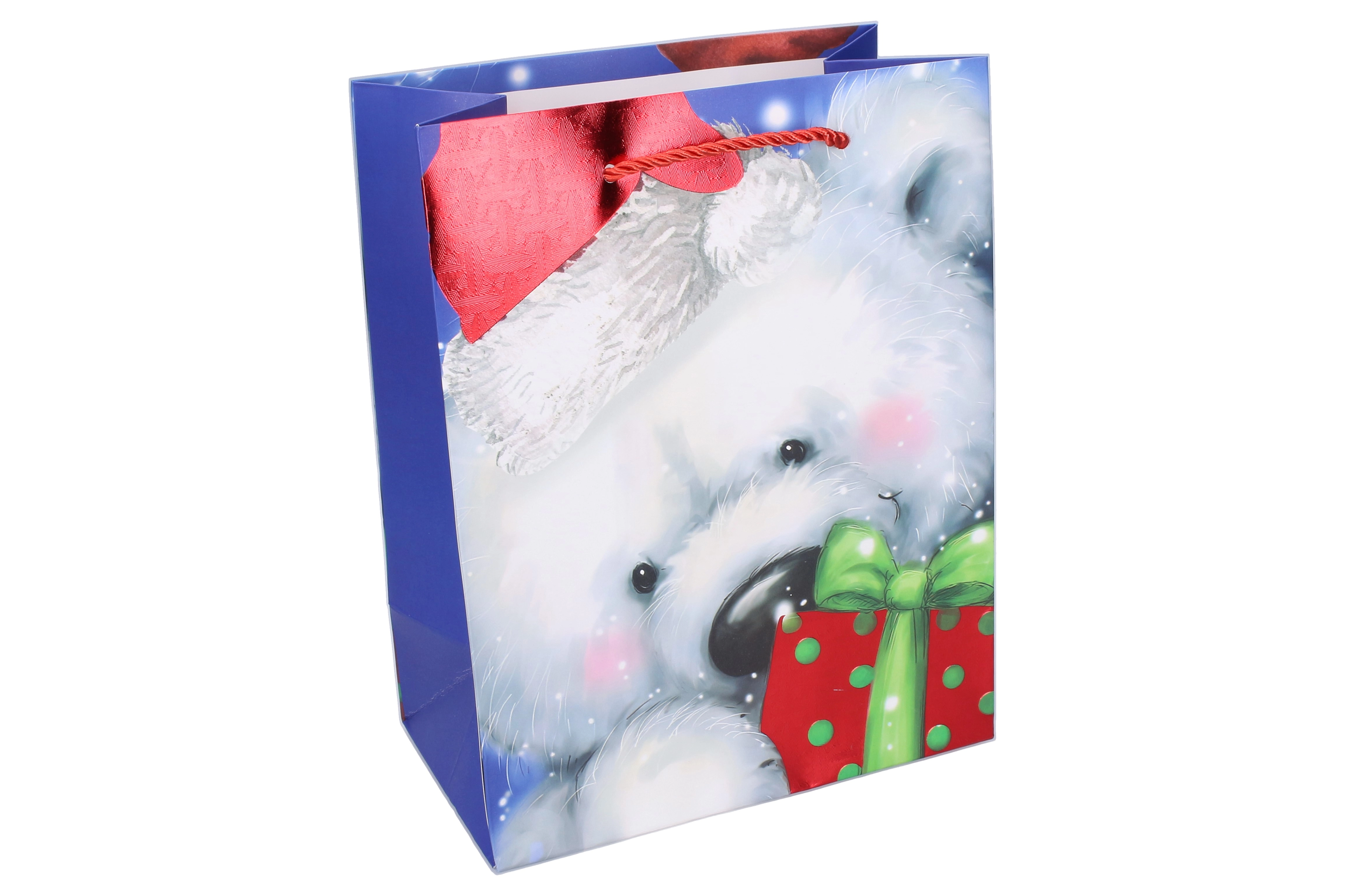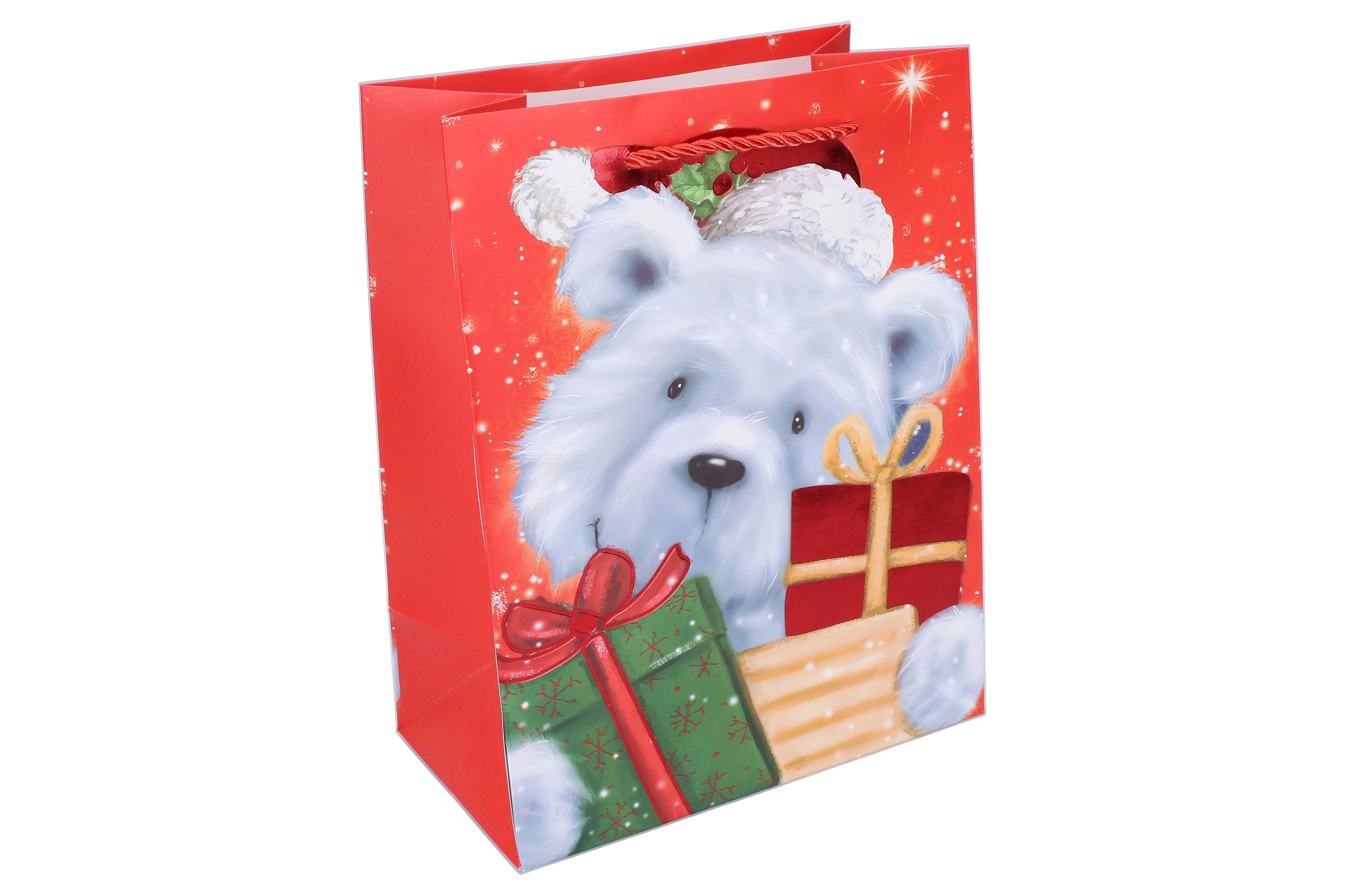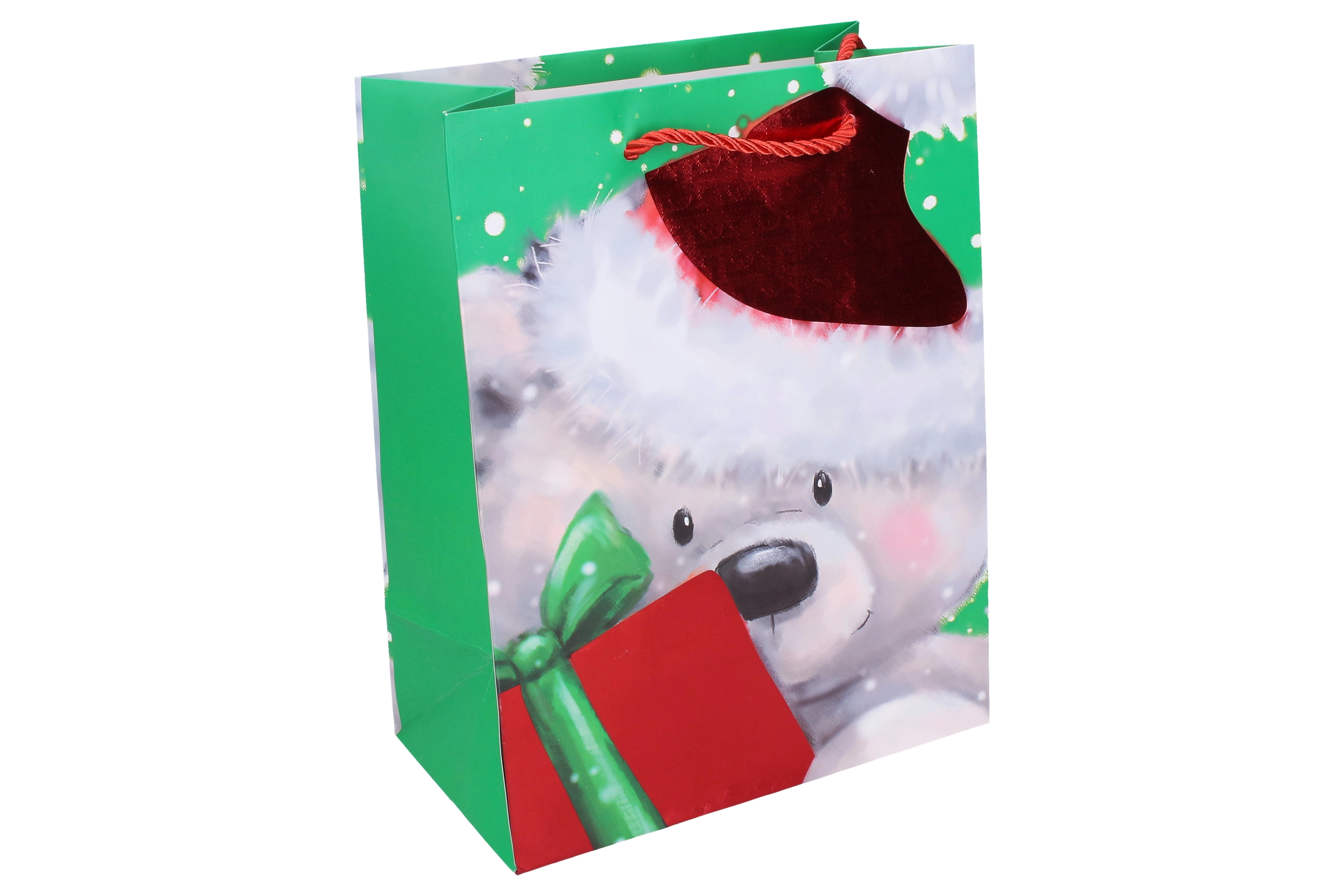 Στυλάτη χριστουγεννιάτικη τσάντα δώρου σε μέγεθος M για άνετη και κομψή συσκευασία δώρων. Ιδανική για μεσαίου μεγέθους δώρα, με ανθεκτικές χειρολαβές και ποιοτική εκτύπωση. Πρακτικές διαστάσεις, χριστουγεννιάτικο μοτίβο και ανθεκτική κατασκευή για επαναλαμβανόμενη χρήση.