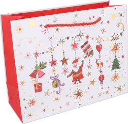 Κομψή χάρτινη τσάντα δώρου σε μέγεθος S για τις γιορτινές σας συσκευασίες. Ιδανική για μικρότερα δώρα και καλλυντικά, με στιβαρή λαβή και ποιοτικό χαρτί για εύκολη και ασφαλή μεταφορά. Διαθέσιμη σε 4 χριστουγεννιάτικες παραλλαγές, που αναδεικνύουν τη γιορτινή ατμόσφαιρα και χαρίζουν στα δώρα στιλάτη συσκευασία.