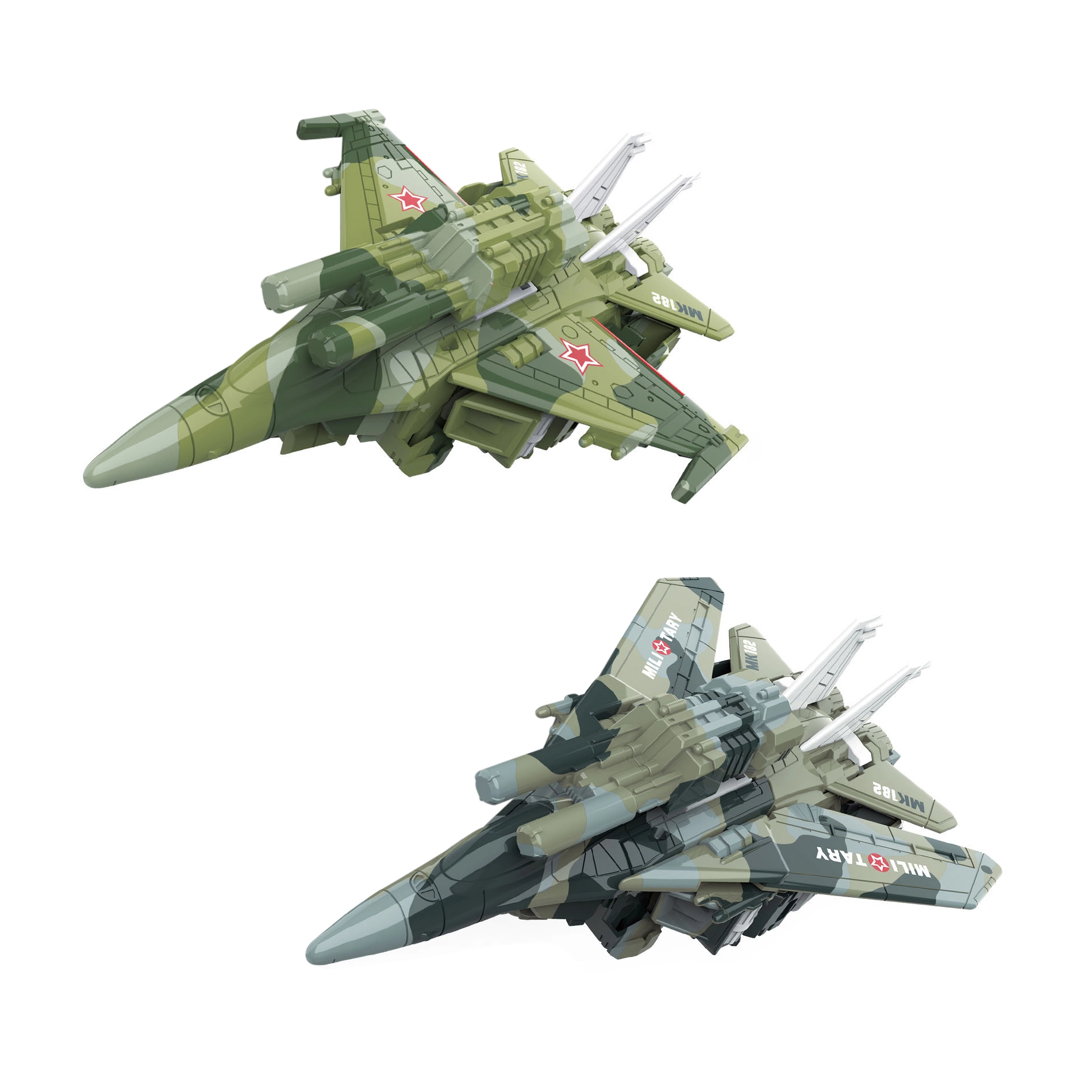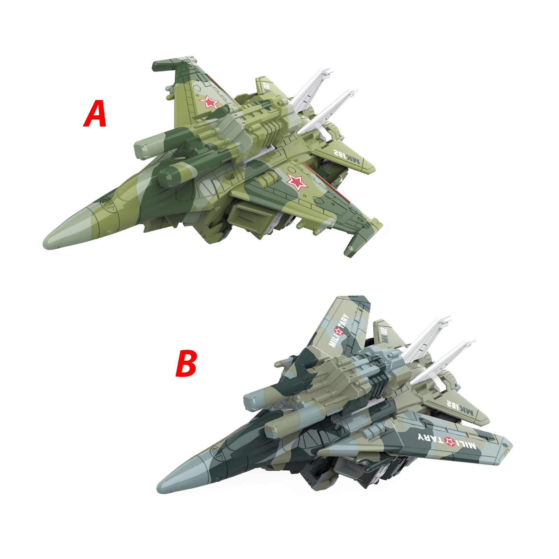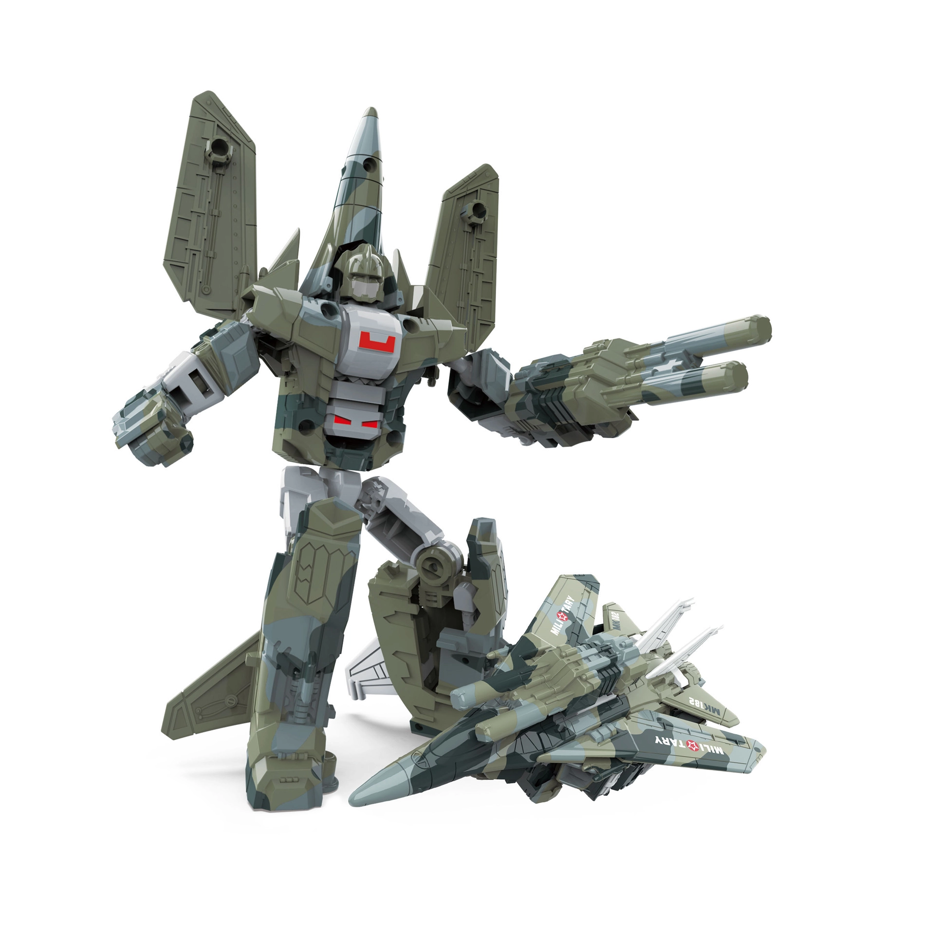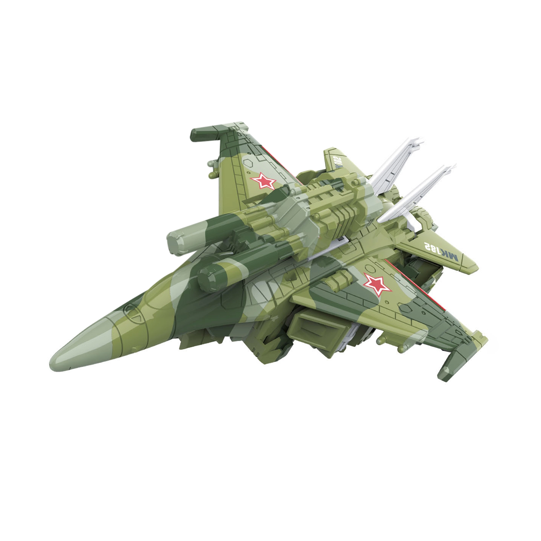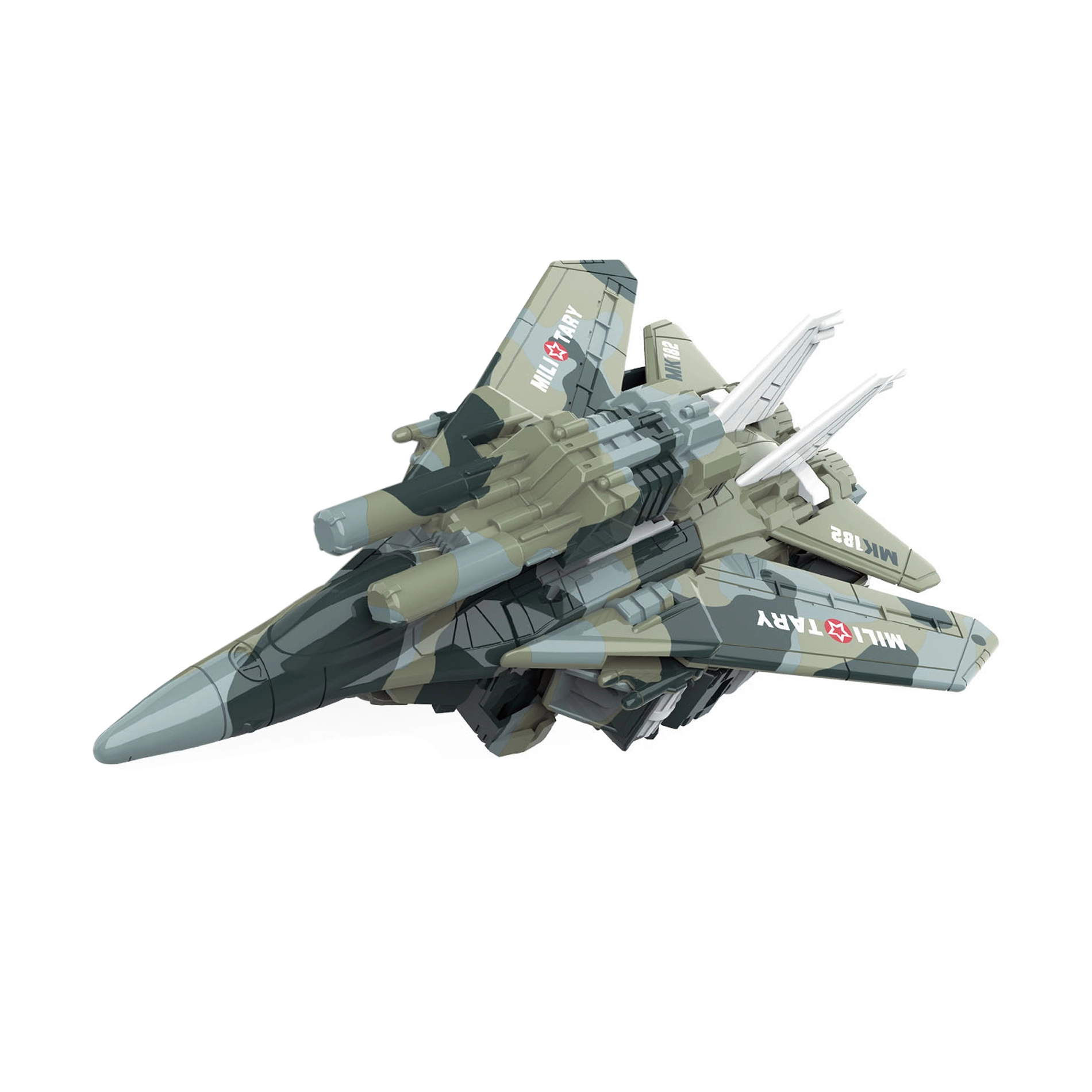 Το μεταμορφούμενο ρομπότ και μαχητικό είναι ένα εξαιρετικό παράδειγμα παιχνιδιού που συνδυάζει τη δημιουργικότητα με το διαδραστικό παιχνίδι. Με μία κίνηση το ρομπότ μετατρέπεται σε στρατιωτικό μαχητικό, επιτρέποντας στα παιδιά να ζήσουν συναρπαστικές ιστορίες γεμάτες δράση. Το παιχνίδι έχει περίπου 15 cm μήκος, ιδανικό μέγεθος για μικρά χέρια.