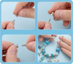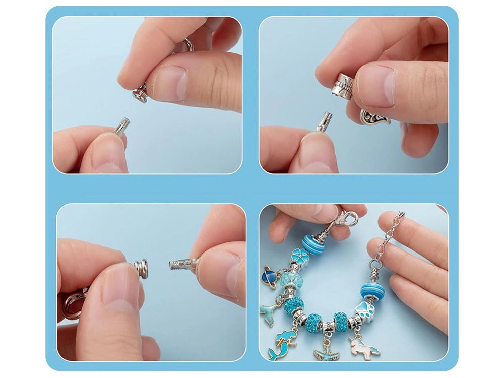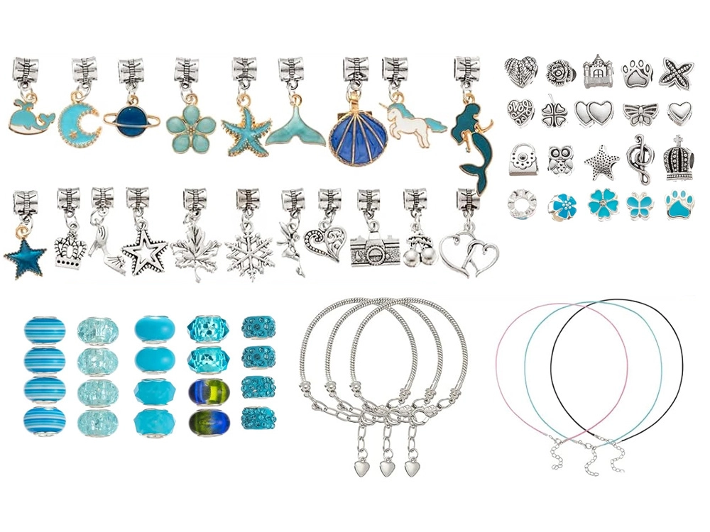 Αυτό το δημιουργικό σετ προσφέρει πλούσια επιλογή εξαρτημάτων για εύκολο περαστό και συναρμολόγηση των δικών σας αξεσουάρ. Μεταλλικά βραχιόλια, ρυθμιζόμενες αλυσίδες και κηροκλωστές, συμπληρωμένα με διακοσμητικές χάντρες και μενταγιόν charms, σας επιτρέπουν να φτιάξετε κοσμήματα ακριβώς όπως τα φαντάζεστε – από θαλάσσια μοτίβα μέχρι καρδιές και λουλούδια.