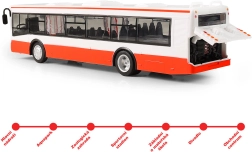 Διασκεδαστικό και ρεαλιστικό λεωφορείο κλίμακας 1:43 που θα ενθουσιάσει κάθε παιδί. Προσφέρει ανακοινώσεις στάσεων στα τσεχικά, φωτεινά και ηχητικά εφέ, ανοιγόμενες πόρτες και κίνηση pull-back. Ιδανικό δώρο για αγόρια και κορίτσια από 3 ετών.