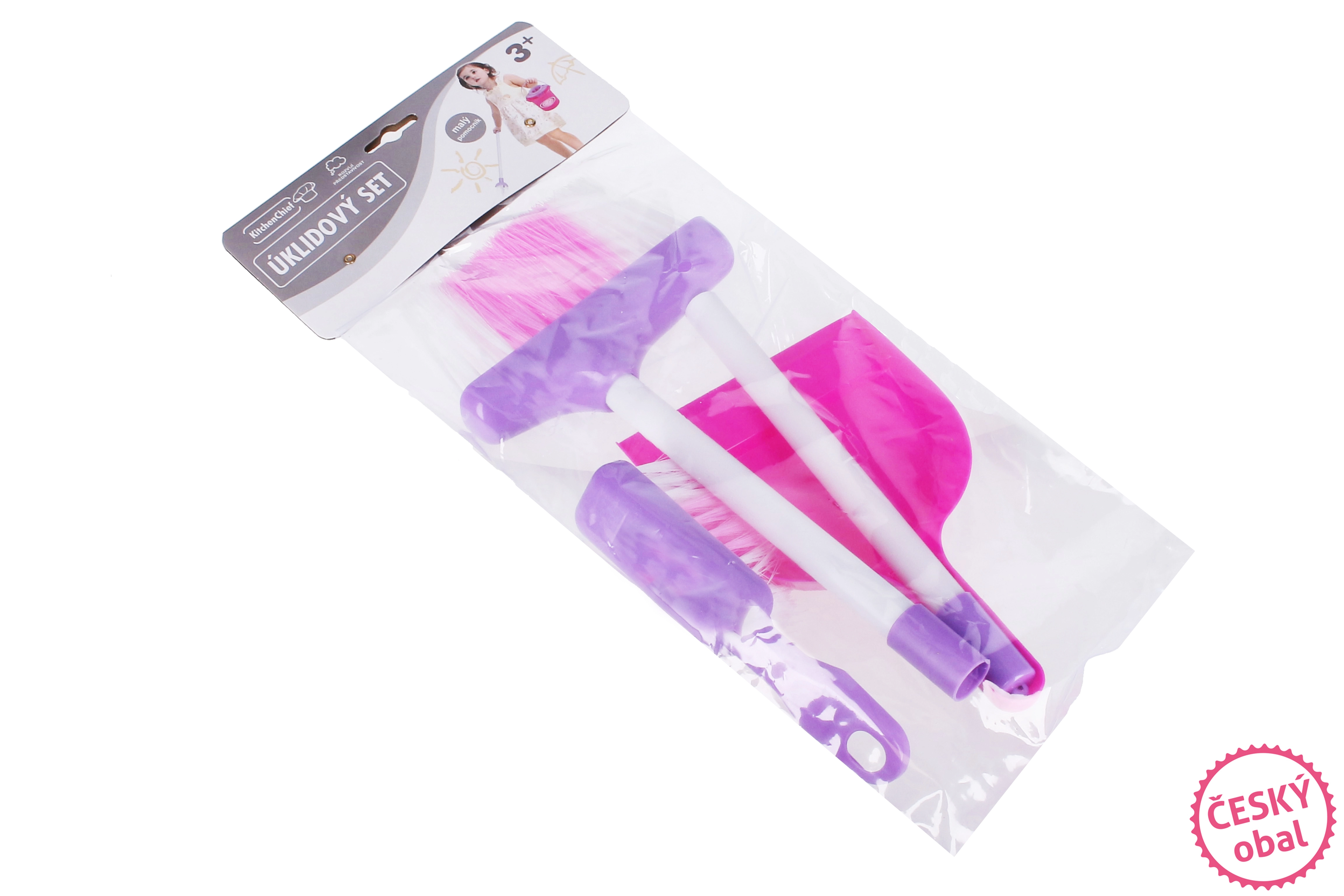 Πρακτικό παιδικό σετ καθαρισμού που αποτελείται από 3 τεμάχια – φαράσι, βουρτσάκι και πτυσσόμενη σκούπα. Κατασκευασμένο από ανθεκτικό πλαστικό σε ροζ-λευκό χρώμα, ιδανικό για παιχνίδι ρόλων στο σπίτι και ανάπτυξη λεπτής κινητικότητας. Η πτυσσόμενη σκούπα χωρά εύκολα σε μικρό κουτί παιχνιδιών.