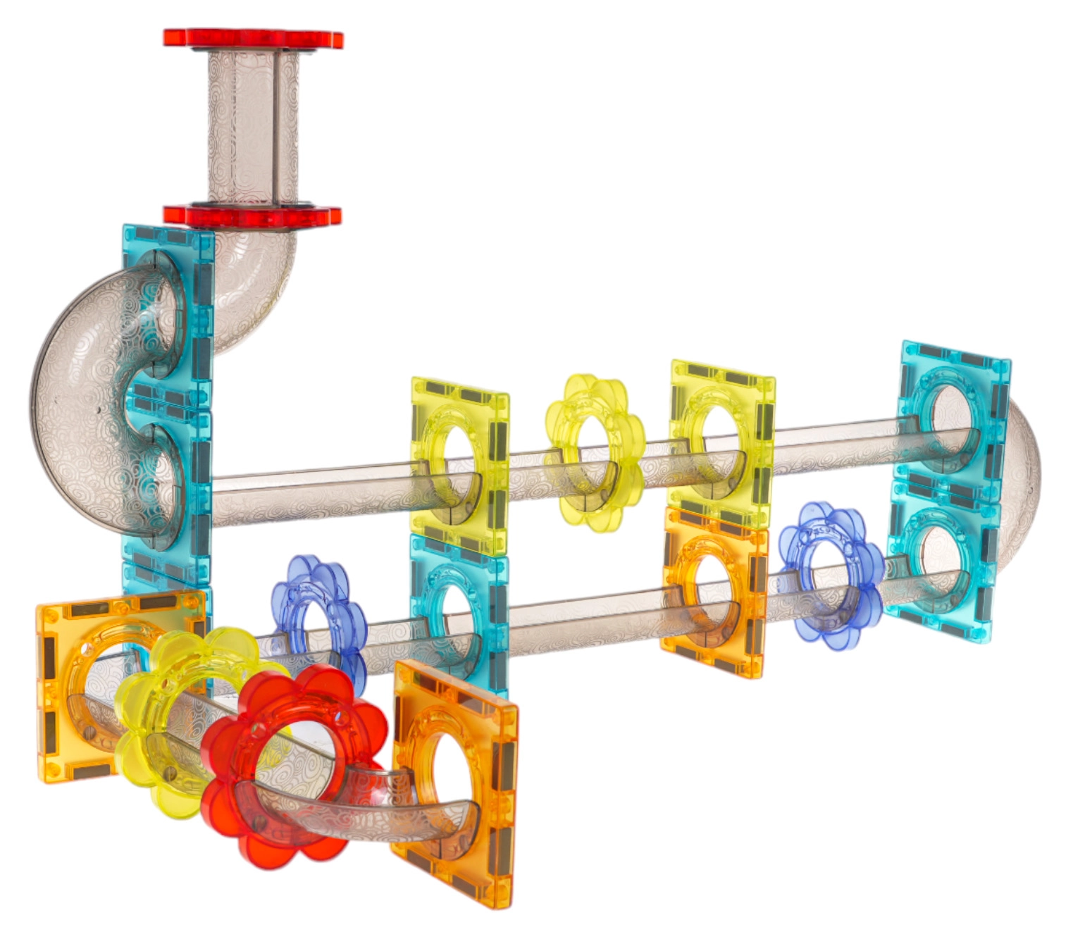 Τα κομμάτια ενώνονται με ποιοτικούς μαγνήτες που κρατούν εξαιρετικά. Τα παιδιά μπορούν εύκολα να χτίζουν και να ανακατασκευάζουν ψηλές και σύνθετες πίστες.