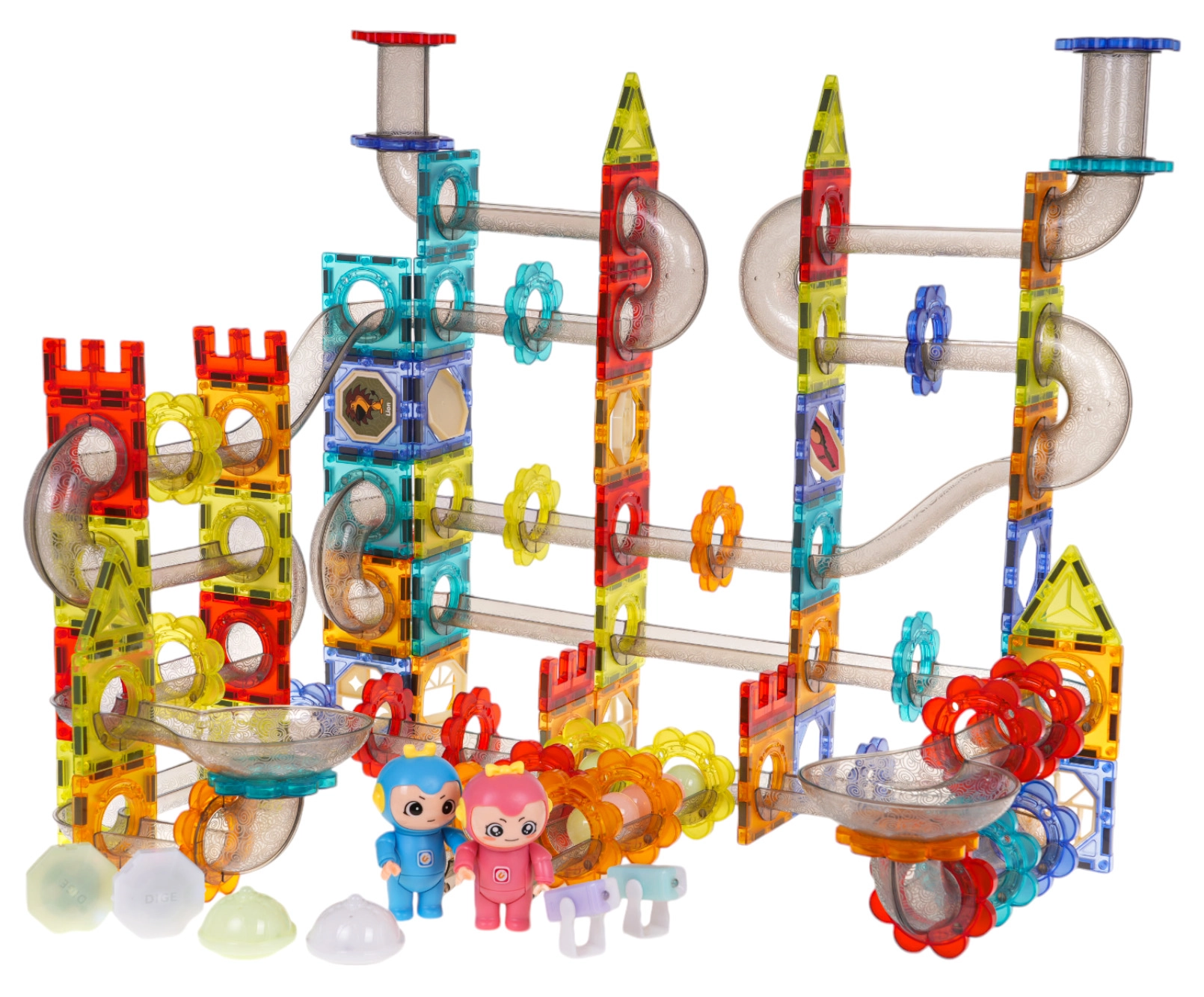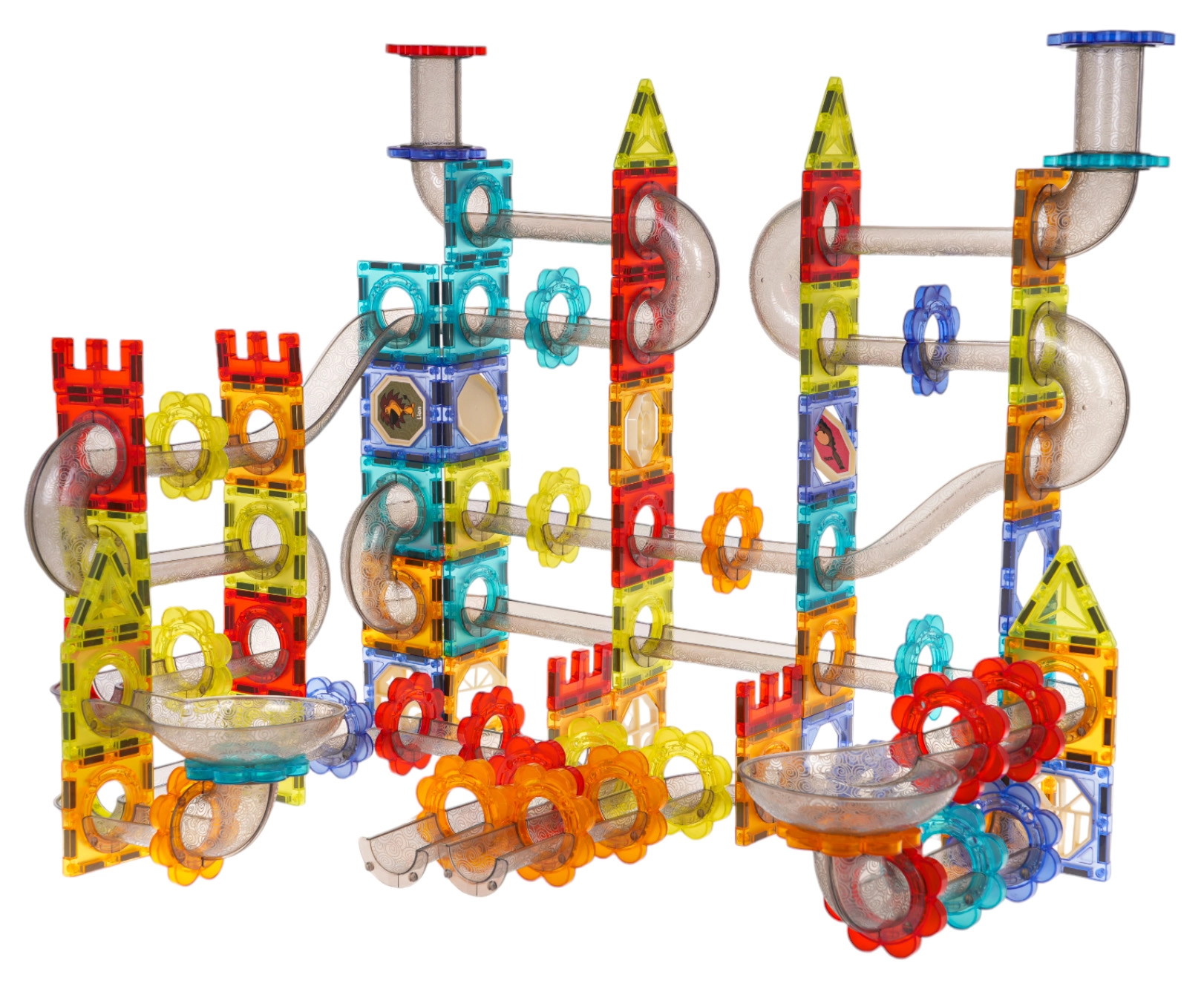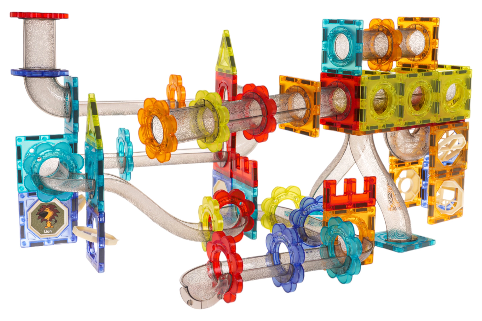 Τα ημιδιαφανή κομμάτια συνδέονται με ασφάλεια χάρη στους ισχυρούς μαγνήτες. Η κατασκευή διατηρεί το σχήμα της ακόμη και σε ψηλούς πύργους και δυναμικές διαδρομές μπίλιας.