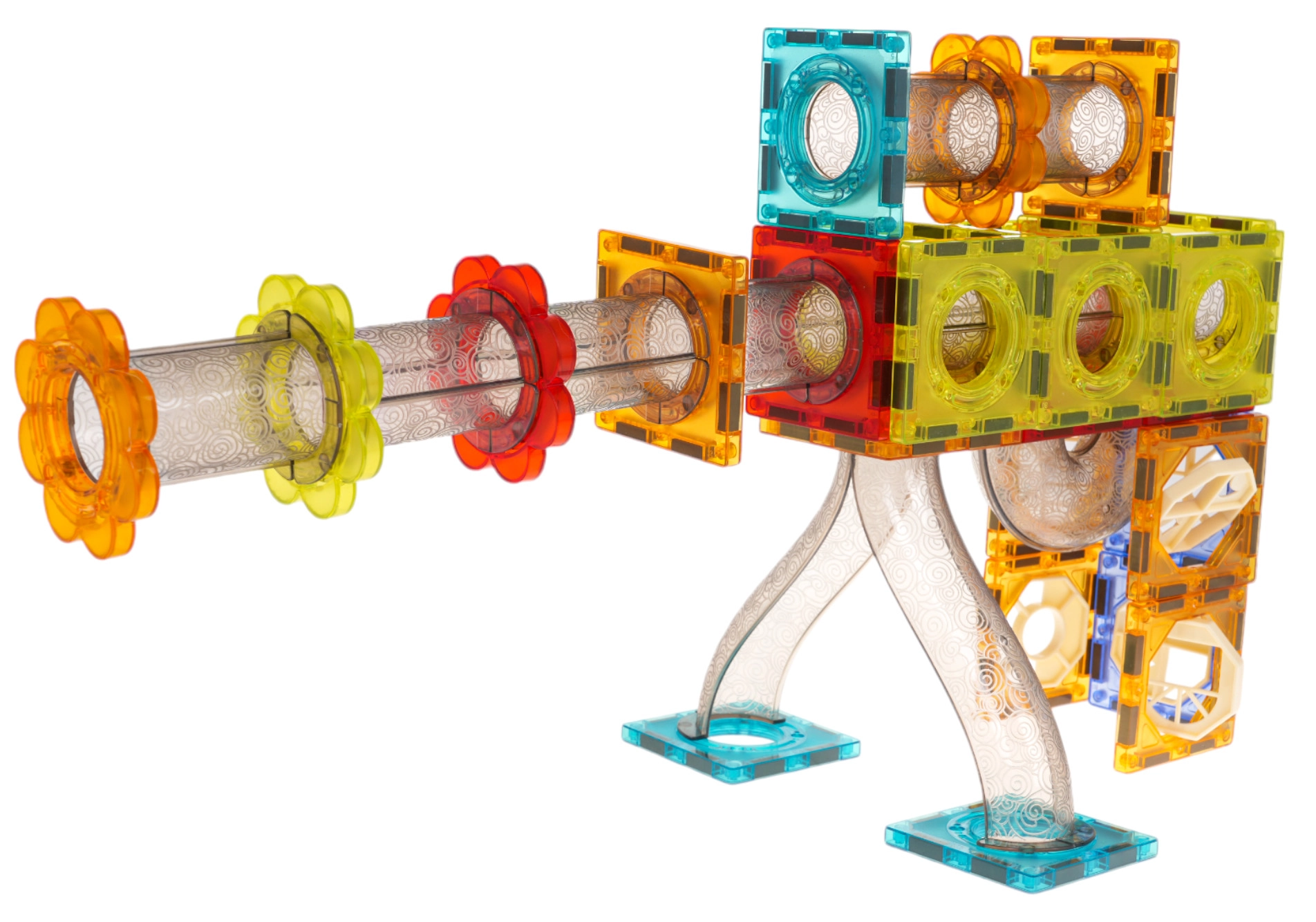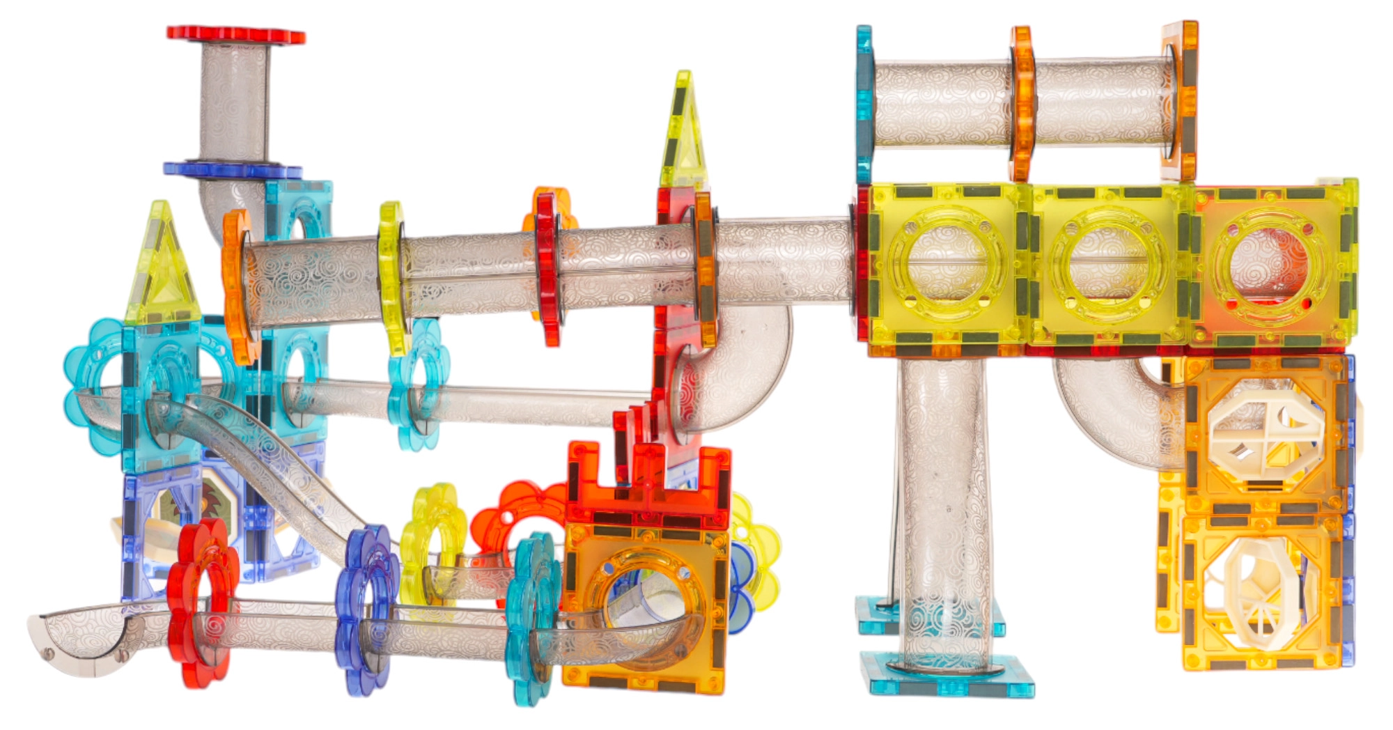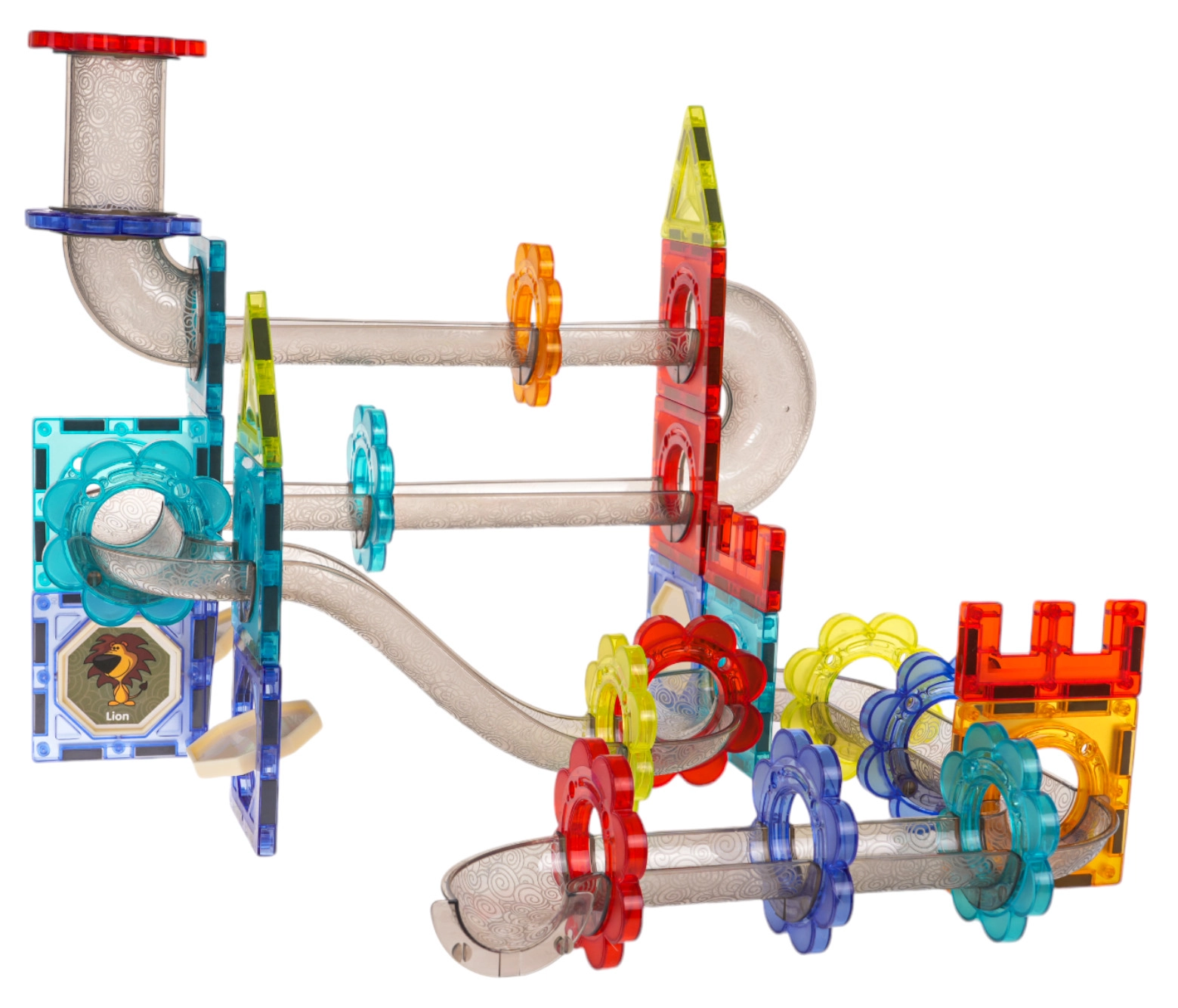 Τα ημιδιαφανή κομμάτια συνδέονται με ασφάλεια χάρη στους ισχυρούς μαγνήτες. Η κατασκευή διατηρεί το σχήμα της ακόμη και σε ψηλούς πύργους και δυναμικές διαδρομές μπίλιας.
