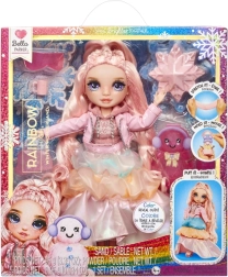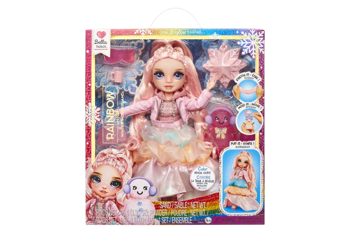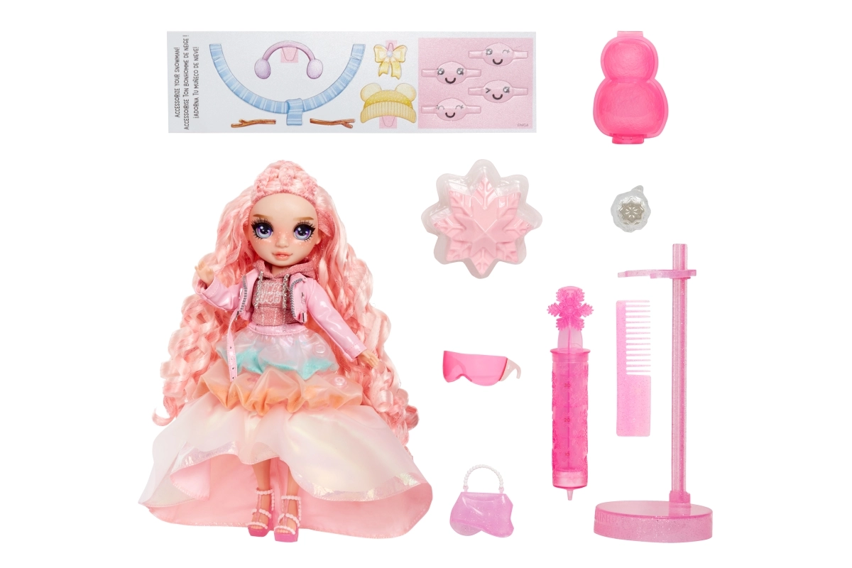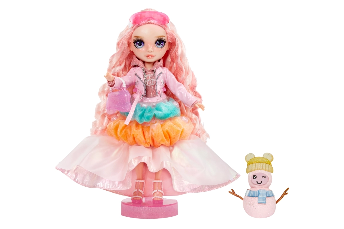 Η χειμερινή έκδοση RAINBOW HIGH φέρνει την κούκλα Bella σε απαλές ροζ αποχρώσεις με παιχνιδιάρικες λεπτομέρειες. Θα σας εκπλήξει με το μαγικό χιόνι, το οποίο με την προσθήκη νερού μεταμορφώνει το outfit σε αφράτη υφή και αποκαλύπτει νέα χρώματα. Στη συσκευασία περιλαμβάνονται βάση, χτένα και χειμερινά αξεσουάρ καθώς και σετ για να φτιάξετε δικό σας χιονάνθρωπο. Η κούκλα είναι πλήρως αρθρωτή (11") για δημιουργικές πόζες και ατέλειωτες ιστορίες.
