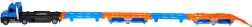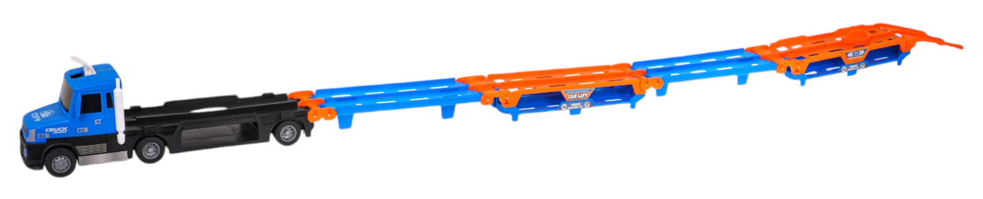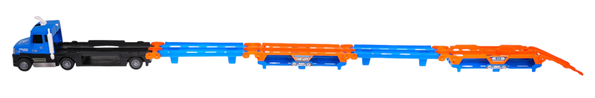 Όταν ανοίξει, το φορτηγό δημιουργεί διεπίπεδη πίστα μήκους έως 140 cm, ιδανική για αγώνες με τα συνοδευτικά αυτοκινητάκια.