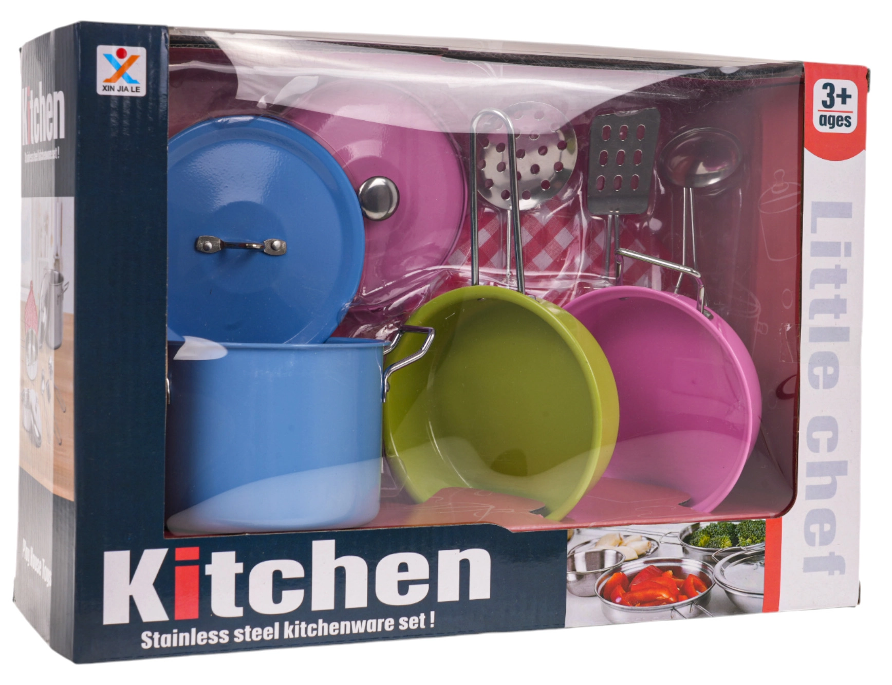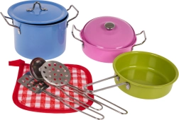 Φωτίστε το παιχνίδι του παιδιού σας με αυτό το υπέροχο σετ πολύχρωμων κουζινικών. Περιλαμβάνει μια όμορφη μπλε κατσαρόλα με χερούλια και καπάκι, μια ροζ κατσαρόλα με χερούλια και καπάκι, ένα πράσινο τηγάνι και διάφορα κουζινικά, που μαζί συνθέτουν το ιδανικό σετ για μικρούς σεφ.