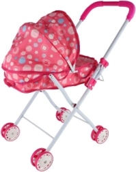 Χαρίστε στη μικρή σας «μαμά» ένα όμορφο, βαθύ καροτσάκι για κούκλες με απαλή υφασμάτινη καλαθούνα. Χάρη στην ελαφριά μεταλλική κατασκευή και τους ανθεκτικούς τροχούς, τα παιδιά το χειρίζονται εύκολα στο σπίτι και έξω. Τα υφασμάτινα μέρη σε ροζ μοτίβα δίνουν παιχνιδιάρικη εμφάνιση και η προσεγμένη κατασκευή εξασφαλίζει μεγάλη αντοχή.