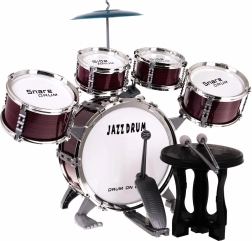 Περιλαμβάνει όλα τα απαραίτητα μέρη: πέντε τύμπανα, πιατίνι, μπαγκέτες και σκαμπό.