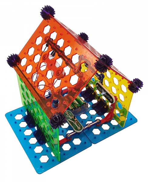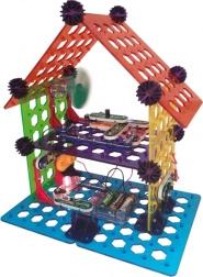 Το σετ BOFFIN II Το σπίτι μου είναι ιδανικό για παιδιά από 8 ετών που θέλουν να κατανοήσουν τις αρχές του ηλεκτρισμού και του έξυπνου σπιτιού. Η βάση είναι μια διάτρητη πλακέτα πάνω στην οποία τα μέρη κουμπώνουν εύκολα – χωρίς κόλληση, με ασφάλεια και με άμεσο αποτέλεσμα. Θα κατασκευάσετε φωτισμό, συναγερμό, διώροφο σπίτι, ανεμόμυλο και σπίτι για πάρτι και θα ελέγξετε τη λειτουργικότητα σύμφωνα με τα παρεχόμενα διαγράμματα.