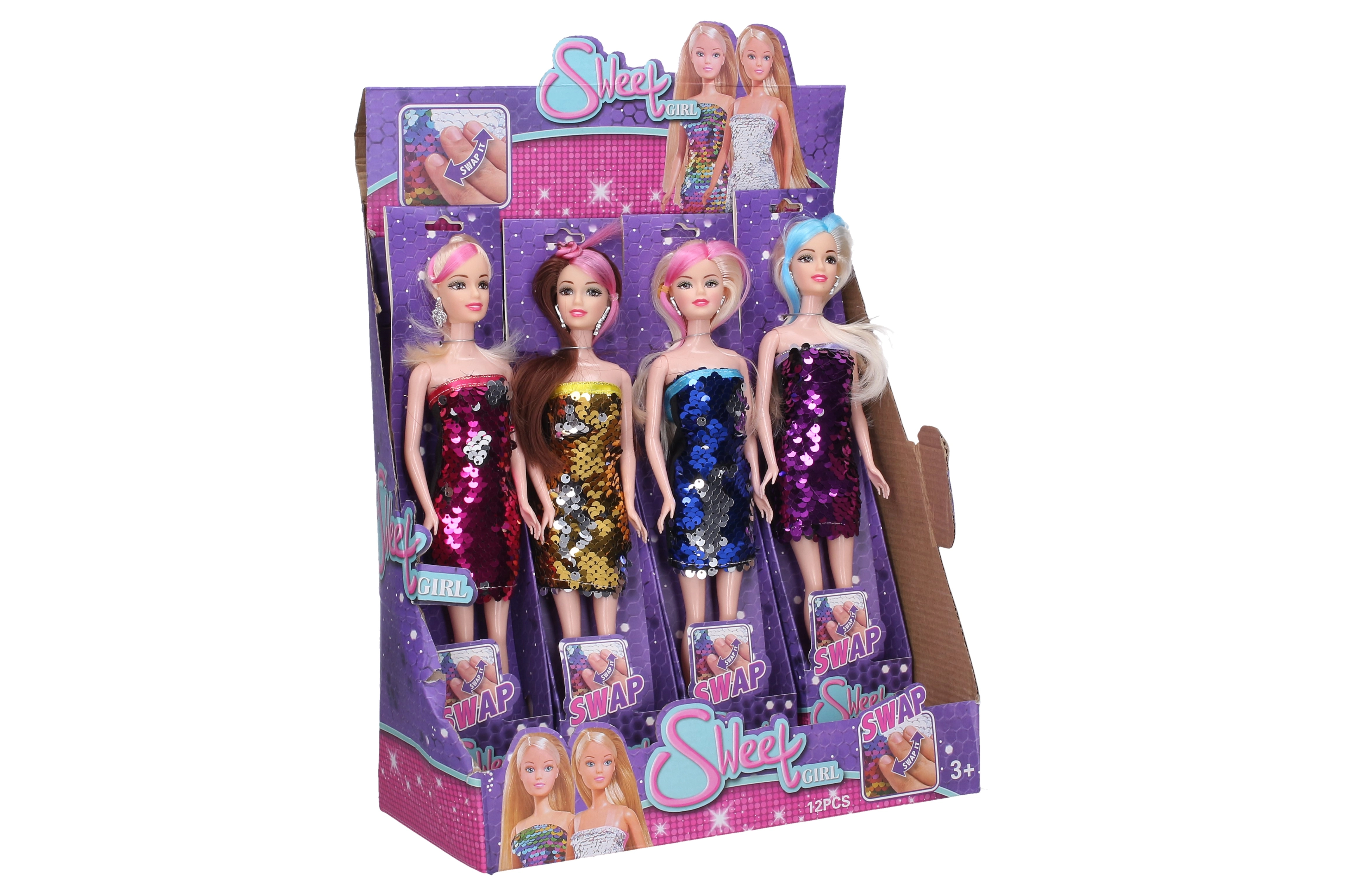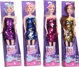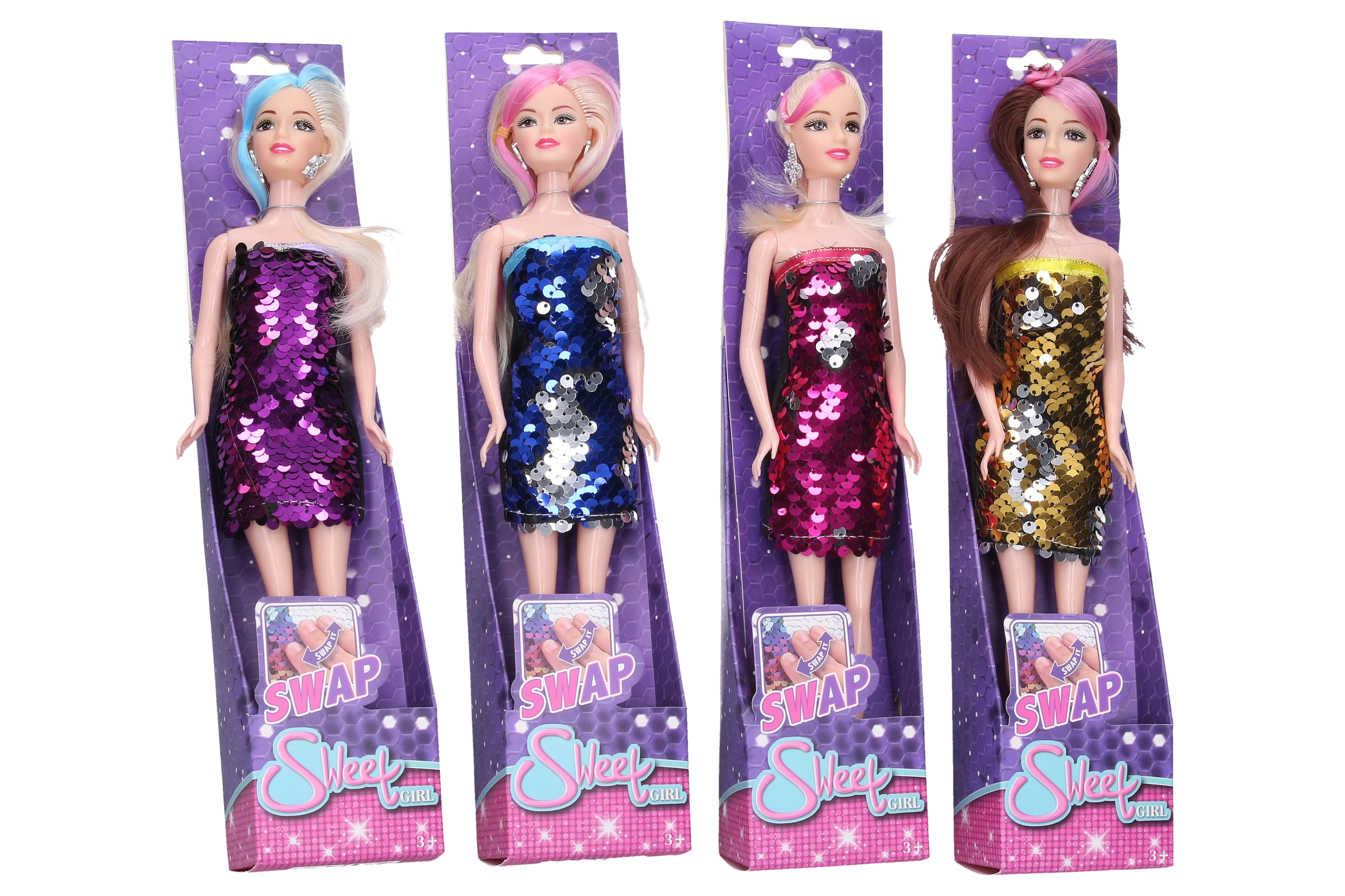 Ντύσου, χτένισε και πάμε στην πόλη για διασκέδαση! Αυτή η στιλάτη κούκλα με μια χρωματιστή τούφα στα μαλλιά και φόρεμα με παγιέτες που αλλάζουν χρώμα με ένα απλό πέρασμα του χεριού είναι ιδανική για κάθε μικρή δεσποινίδα.