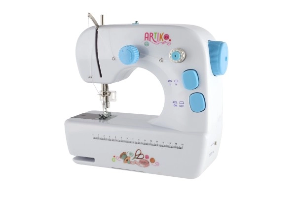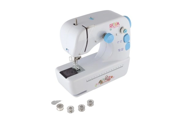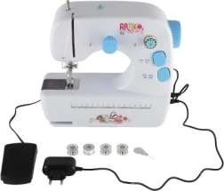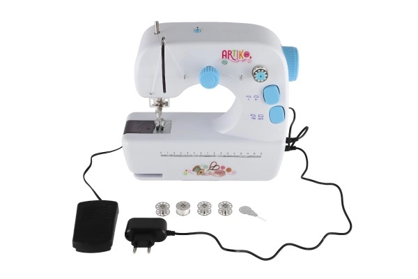Η μηχανή τροφοδοτείται είτε με 4x AAA μπαταρίες, που δεν περιλαμβάνονται, είτε με εξωτερική παροχή ρεύματος που περιλαμβάνεται στη συσκευασία. Στη συσκευασία θα βρείτε επίσης καρούλια και ανταλλακτική βελόνα, επιτρέποντας απρόσκοπτο ράψιμο.