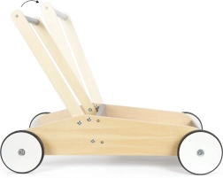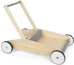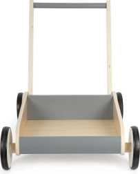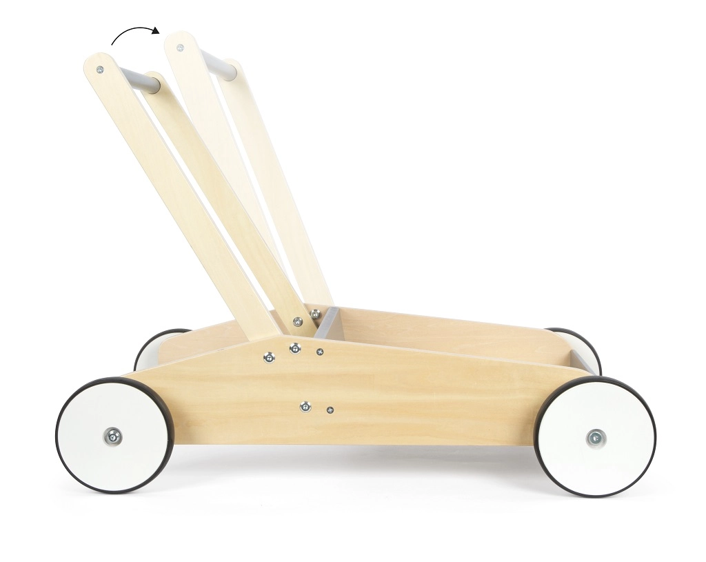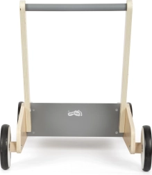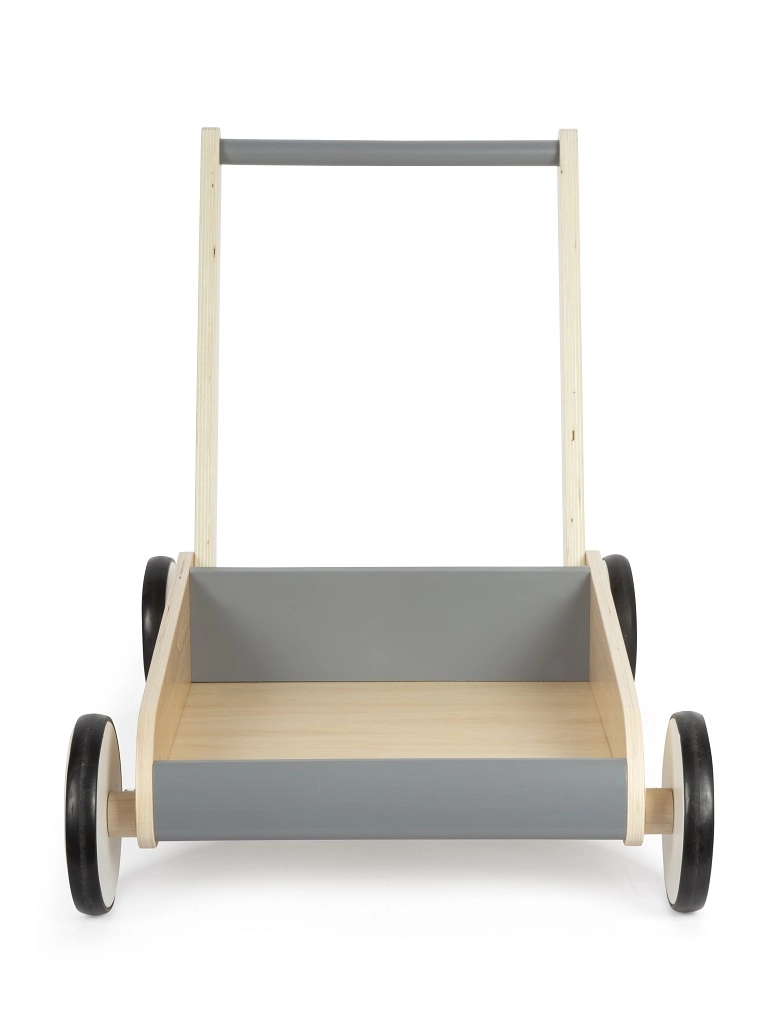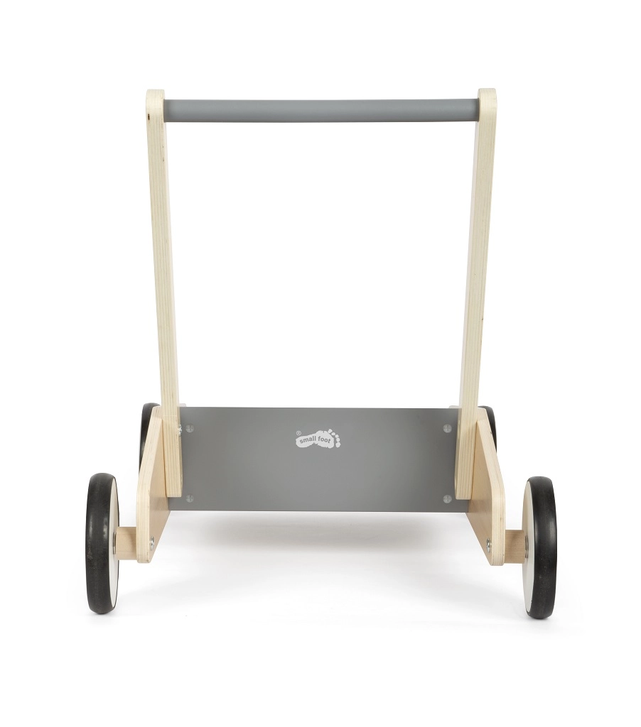 Ανακαλύψτε έναν αξιόπιστο σύντροφο για τα πρώτα βήματα. Η στιβαρή κατασκευή από ποιοτικό επενδεδυμένο ξύλο σε συνδυασμό με στοιχεία σε σχιστό γκρι προσφέρει σιγουριά, ασφάλεια και μοντέρνα εμφάνιση. Οι στρογγυλεμένες άκρες και οι λαστιχένιοι τροχοί είναι φιλικοί στα παιδικά χέρια και στα δάπεδα, ενώ το σύστημα φρεναρίσματος βοηθά να διατηρείται άνετος ρυθμός κατά την εκμάθηση της βάδισης.