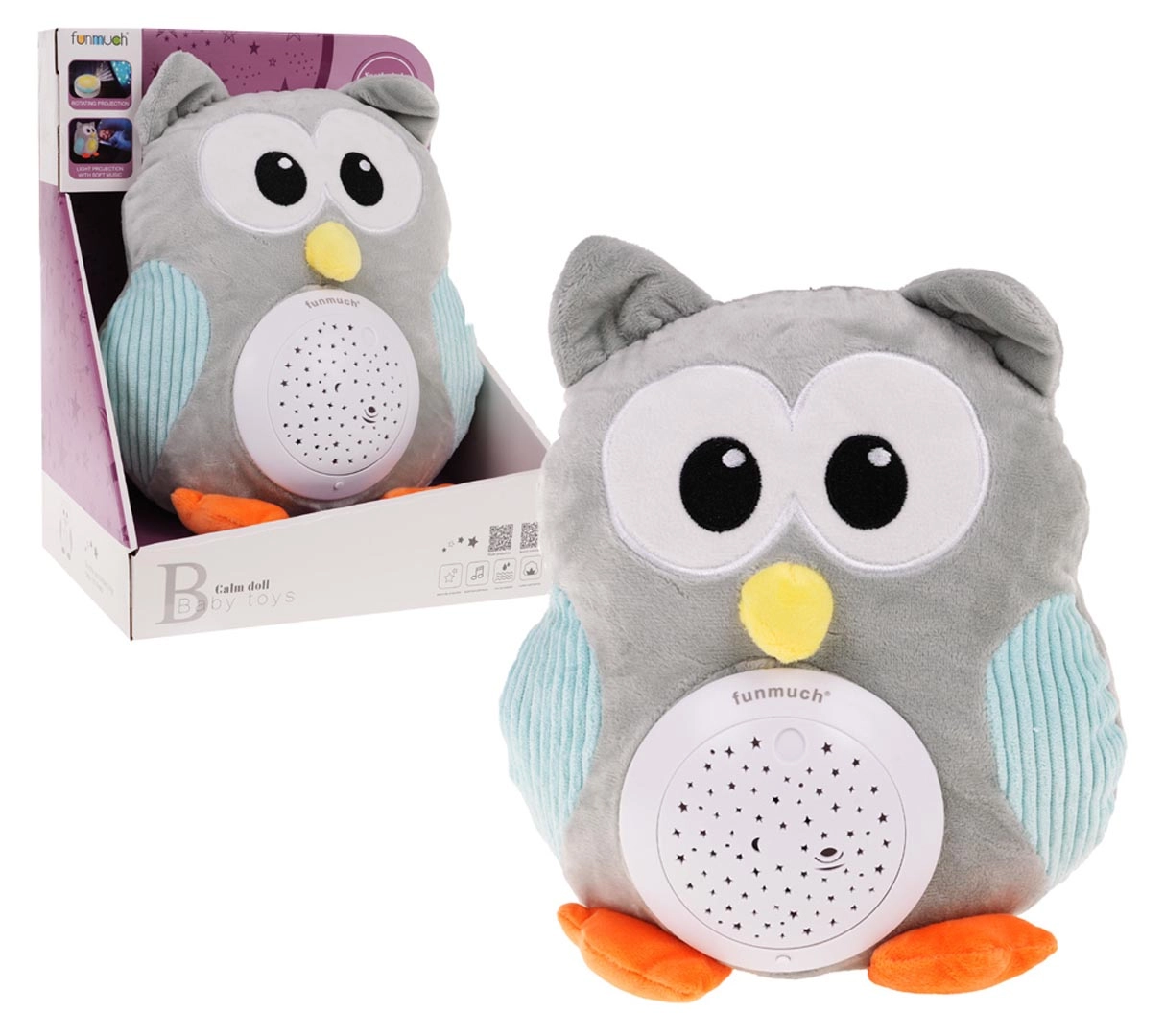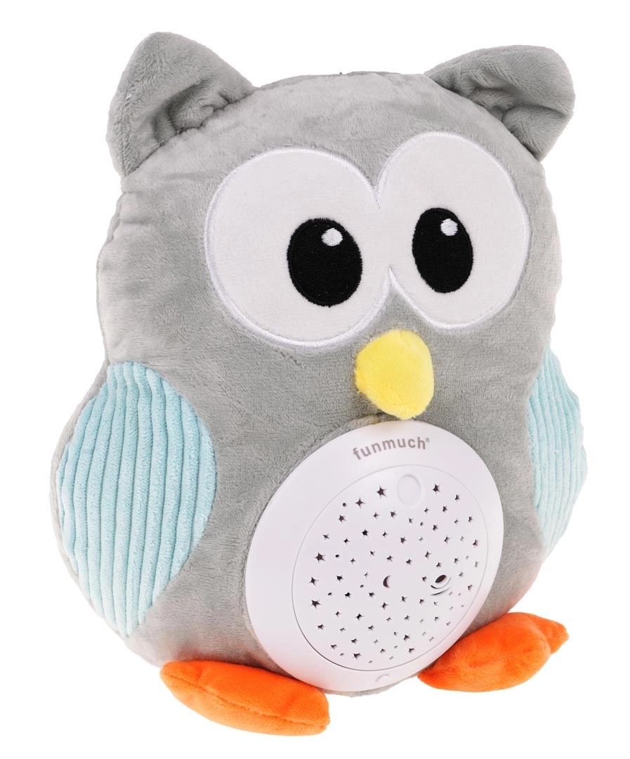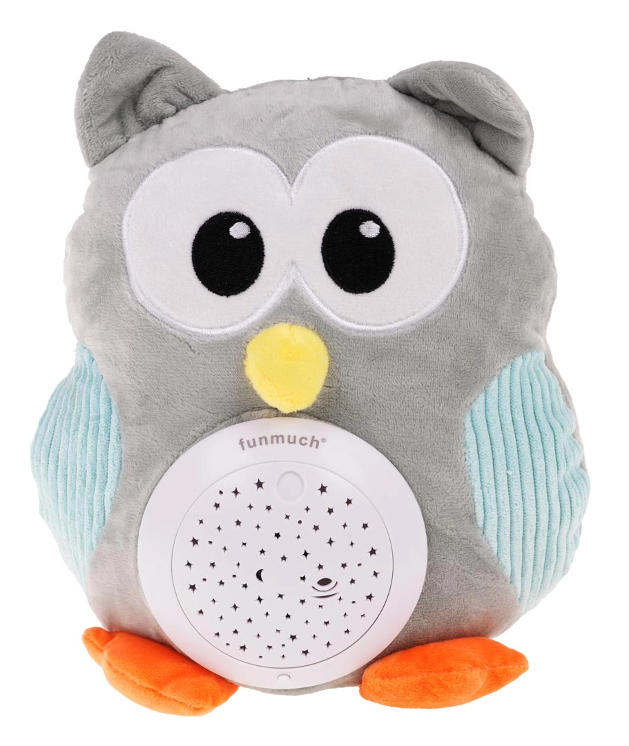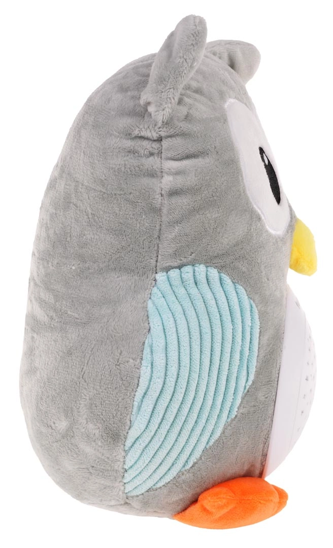 Αυτή η χαριτωμένη λούτρινη κουκουβάγια συνδυάζει αισθητηριακά ερεθίσματα φωτός και ήχου για να βοηθά το μωρό σας να αποκοιμιέται πιο εύκολα και να νιώθει ασφάλεια. Στην κοιλίτσα της διαθέτει αποσπώμενη μονάδα που προβάλλει πολύχρωμα αστεράκια και αναπαράγει ευχάριστους ήχους και μελωδίες. Μετά την αφαίρεση της μονάδας, η κουκουβάγια πλένεται εύκολα στο πλυντήριο, ώστε να είναι πάντα καθαρή και ευωδιαστή.