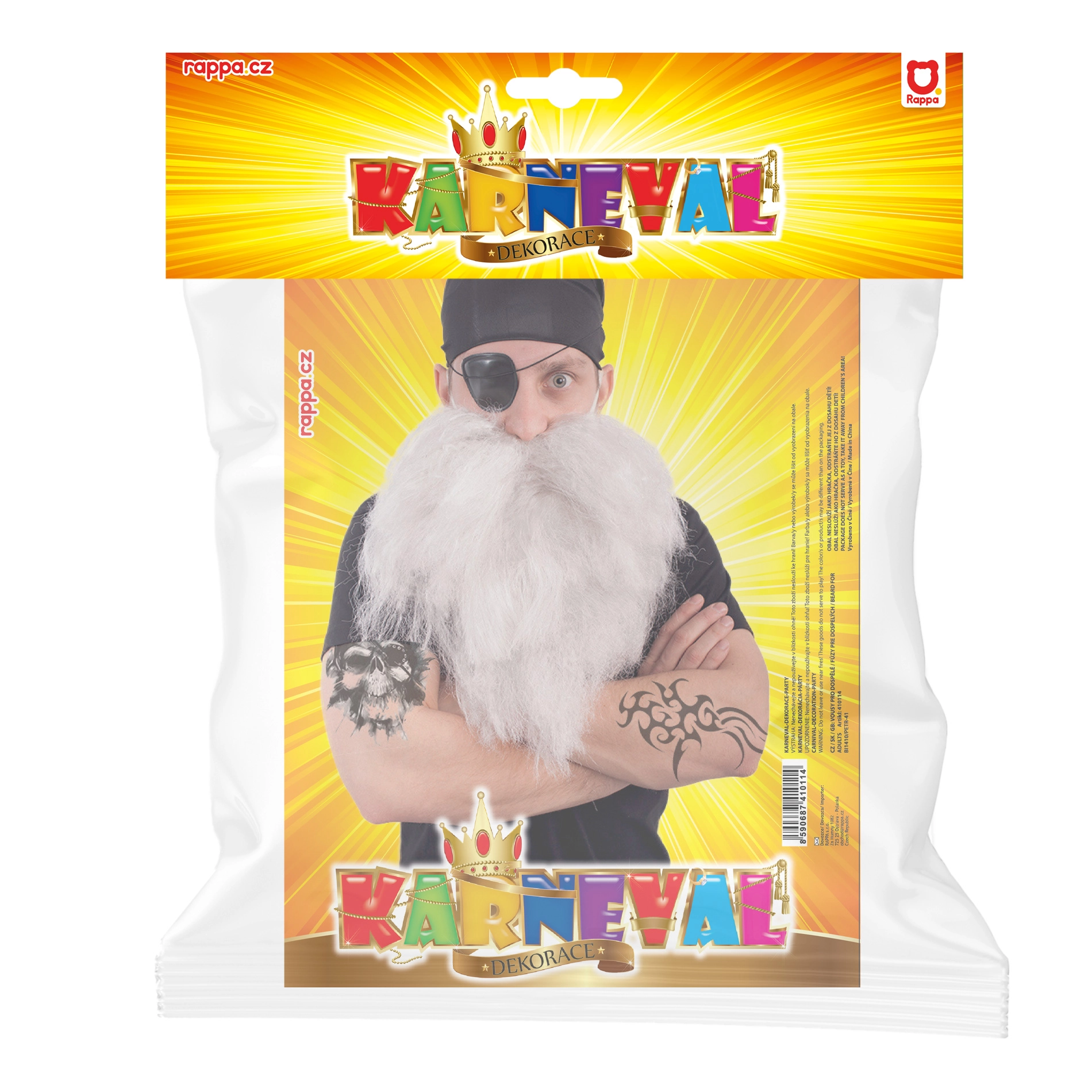 Μεταμορφωθείτε σε ατρόμητο πειρατή μέσα σε λίγες στιγμές. Αυτό το ευέλικτο σετ αξεσουάρ συμπληρώνει κάθε στολή και σας εξασφαλίζει εντυπωσιακή και διασκεδαστική εμφάνιση. Χάρη στον συνδυασμό των μακριών λευκών γενιών, του κλασικού καλύμματος ματιού και του μαύρου μαντηλιού, αποκτάτε στυλ άμεσα αναγνωρίσιμο.