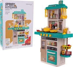 Αυτή η παιδική κουζίνα προσφέρει ρεαλιστικό παιχνίδι μαγειρικής χάρη στους φωτιζόμενους καυστήρες, τα περιστρεφόμενα κουμπιά και τους ήχους τηγανίσματος και βρασμού. Από έναν καυστήρα απελευθερώνεται απαλός υδάτινος ατμός, που εντείνει την εμπειρία. Η βρύση με τρέχον νερό επιτρέπει στους μικρούς σεφ να ξεπλένουν τα σκεύη όπως σε μια αληθινή κουζίνα.