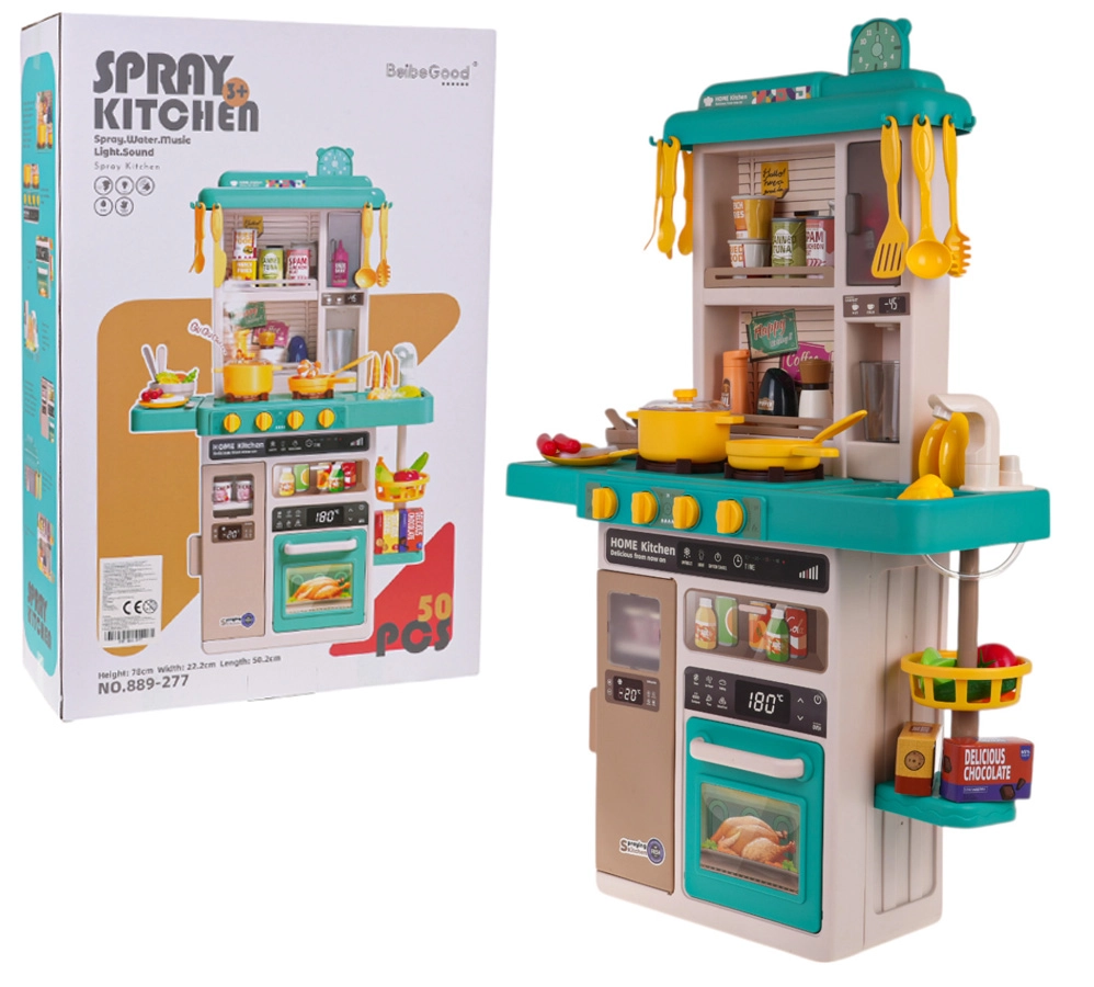 Καλλιεργήστε τη φαντασία των παιδιών με τη διαδραστική κουζίνα που προσφέρει φωτεινά εφέ, ρεαλιστικούς ήχους μαγειρέματος και τηγανίσματος, τρέχον νερό από τη βρύση και ακόμη και ασφαλή υδάτινο ατμό από τον καυστήρα. Ο πλούσιος εξοπλισμός με 50 τεμάχια, το ποιοτικό πλαστικό και τα ζωντανά χρώματα κάνουν αυτή την κουζίνα το ιδανικό παιχνίδι για παιδιά από 3 ετών.