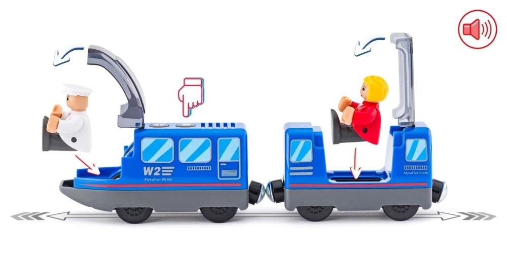 Αυτό το μπαταριοκίνητο επιβατικό τρένο προσφέρει στα παιδιά ώρες δημιουργικού παιχνιδιού. Ρεαλιστικές λεπτομέρειες, κινούμενο σετ με φιγούρες και εύκολος χειρισμός ενισχύουν τη φαντασία και τη λεπτή κινητικότητα. Χάρη στις συμπαγείς διαστάσεις του είναι κατάλληλο για το σπίτι αλλά και για το ταξίδι.