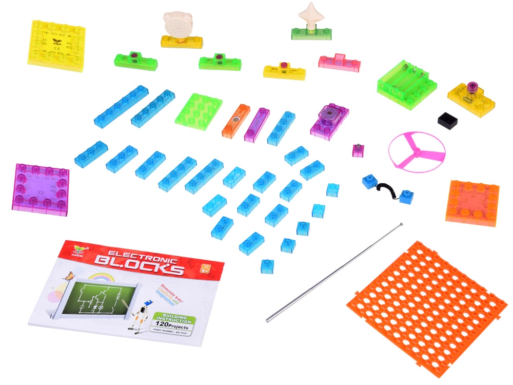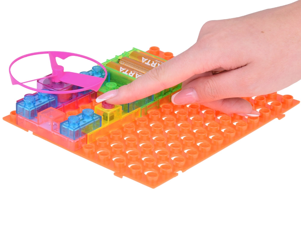 Αυτό το διαδραστικό ηλεκτρονικό κιτ καλλιεργεί το λογικό μυαλό, τις χειρωνακτικές δεξιότητες και τη φυσική περιέργεια. Χάρη στις ευδιάκριτα σημειωμένες μονάδες, τα παιδιά κατανοούν γρήγορα τις αρχές της αγωγιμότητας, της σύνδεσης σε σειρά και παράλληλα καθώς και τις βασικές σχέσεις ανάμεσα σε τάση, ρεύμα και αντίσταση. Τα έργα προσφέρουν άμεση ανατροφοδότηση – η έλικα περιστρέφεται, οι διόδοι ανάβουν και το ηχείο παίζει.