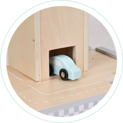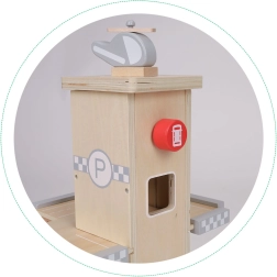 Τρία επίπεδα με ράμπες προσκαλούν σε παρκάρισμα, οδήγηση και ελιγμούς. Ιδανικό για την ανάπτυξη φαντασίας και λεπτών κινητικών δεξιοτήτων.