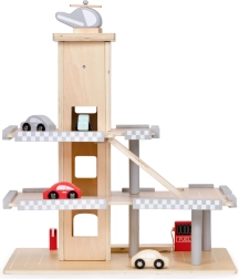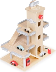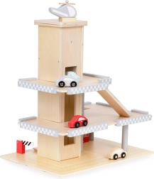 Αυτό το κομψό ξύλινο γκαράζ θα ενθουσιάσει κάθε παιδί που αγαπά τα αυτοκίνητα και το δημιουργικό παιχνίδι. Χάρη στα τρία επίπεδα, τις ομαλές ράμπες και το ασανσέρ που σταματά σε κάθε όροφο προσφέρει ώρες διασκέδασης και αναπτύσσει τη λεπτή κινητικότητα και τη φαντασία.