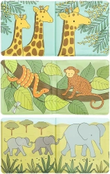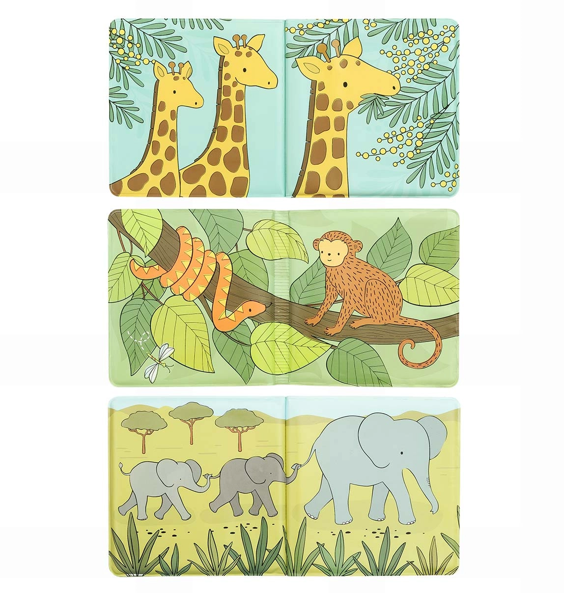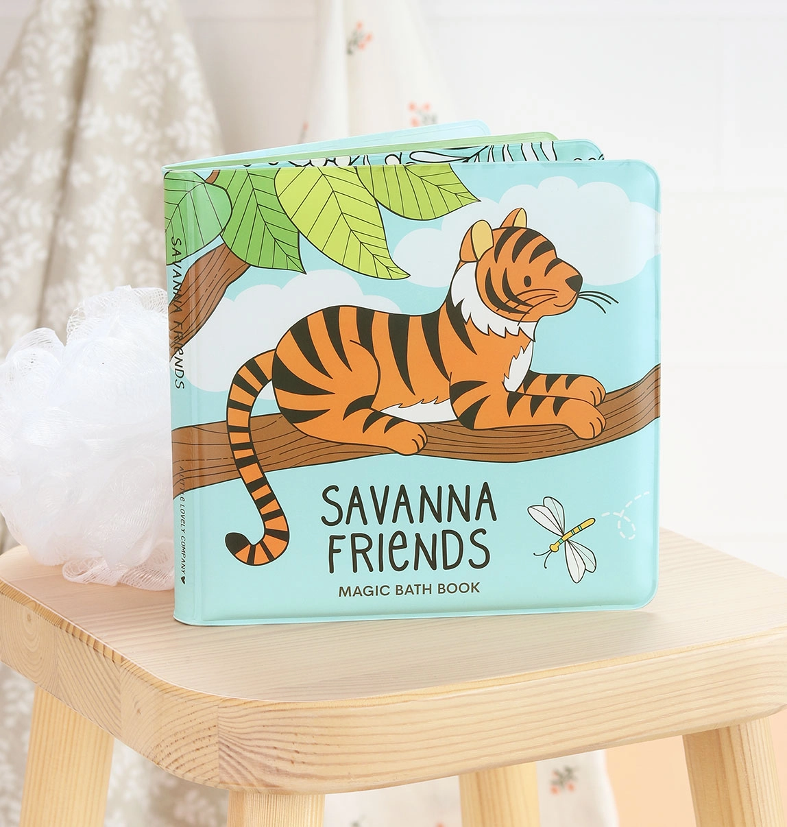 Ανακαλύψτε το διασκεδαστικό μαγικό βιβλιαράκι μπάνιου για παιδιά από 12 μηνών. Μαλακές, αδιάβροχες σελίδες με χαριτωμένα ζωάκια της σαβάνας ζωντανεύουν όταν βρέχονται – τα χρώματα τονίζονται αμέσως με την επαφή με το νερό. Μπορεί να χρωματιστεί και με βρεγμένο πινέλο εκτός μπάνιου και όταν στεγνώσει το χρώμα εξαφανίζεται ξανά.