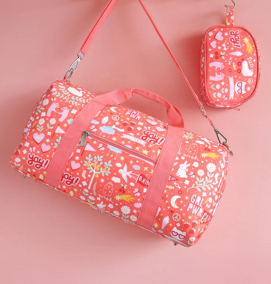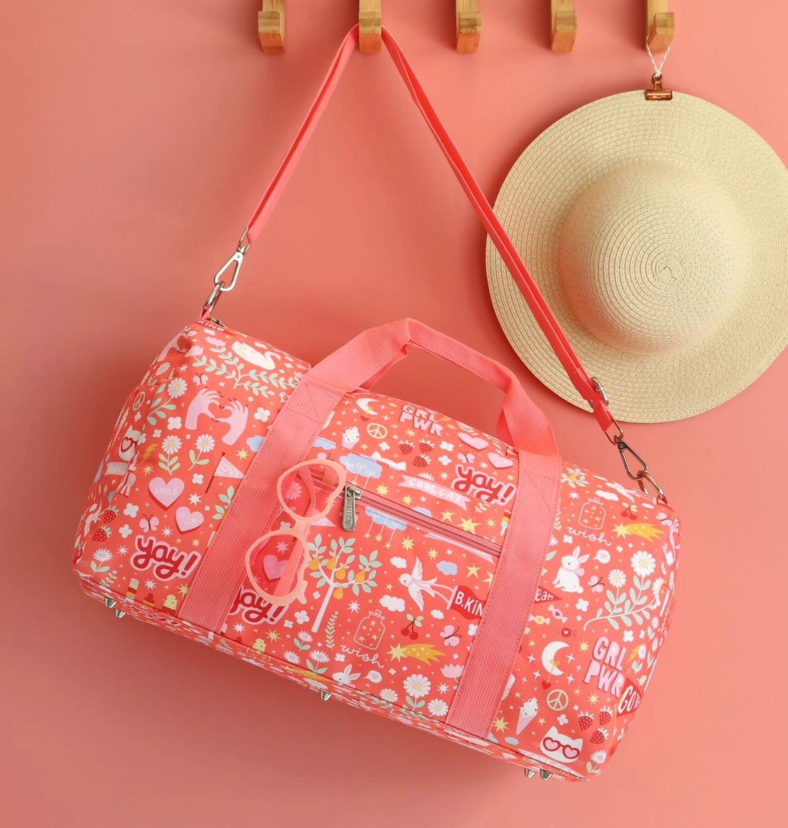 Πρακτική και στιλάτη παιδική ταξιδιωτική τσάντα από την A Little Lovely Company, ιδανική για αθλητικές δραστηριότητες, αποδράσεις το σαββατοκύριακο και ως χειραποσκευή στο αεροπλάνο. Προσφέρει ευρύχωρο κύριο διαμέρισμα, πολλές τσέπες για οργανωμένη τακτοποίηση και ανθεκτικό, ελαφρύ πολυεστέρα με χαρούμενη, πολύχρωμη εκτύπωση. Χάρη στον αποσπώμενο ιμάντα ώμου και τα στιβαρά χερούλια, μεταφέρεται άνετα τόσο από παιδιά όσο και από γονείς.