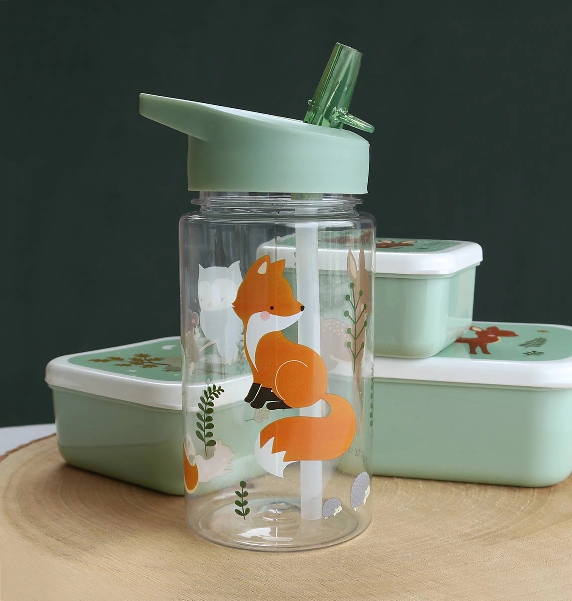 Διαφανές παιδικό μπουκάλι νερού με θέμα δασικά ζωάκια, χωρητικότητας 450 ml, ιδανικό για το νηπιαγωγείο και τις εκδρομές. Χάρη στο ασφαλές κλείσιμο είναι στεγανό, ελαφρύ και ανθεκτικό. Η Tritan κατασκευή χωρίς BPA εξασφαλίζει μεγάλη αντοχή και καθαρή γεύση στο ρόφημα. Δημιουργήστε ένα πλήρες σετ στο ίδιο σχέδιο – μπουκάλι, σακίδιο και δοχείο φαγητού.