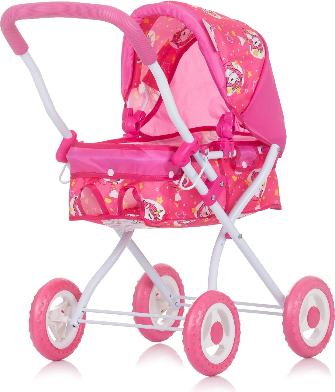 Το χαριτωμένο μοτίβο μονόκερων και η μαλακή κουκούλα προστατεύουν την κούκλα και προσδίδουν στο καρότσι μια μαγική εμφάνιση.