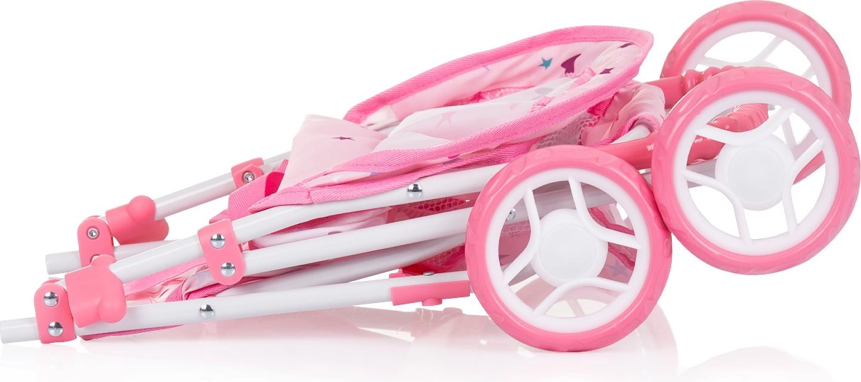 Το καροτσάκι διπλώνει γρήγορα σε συμπαγές μέγεθος, ώστε να μεταφέρεται και να αποθηκεύεται εύκολα. Το παιχνίδι με το καροτσάκι βοηθά στην ανάπτυξη της σωματικής συντονισμού, και διδάσκει στα παιδιά φροντίδα, ενσυναίσθηση και υπευθυνότητα. Η συντήρηση είναι απλή – αρκεί ένα απαλό στεγνό ή ελαφρώς νωπό πανί.