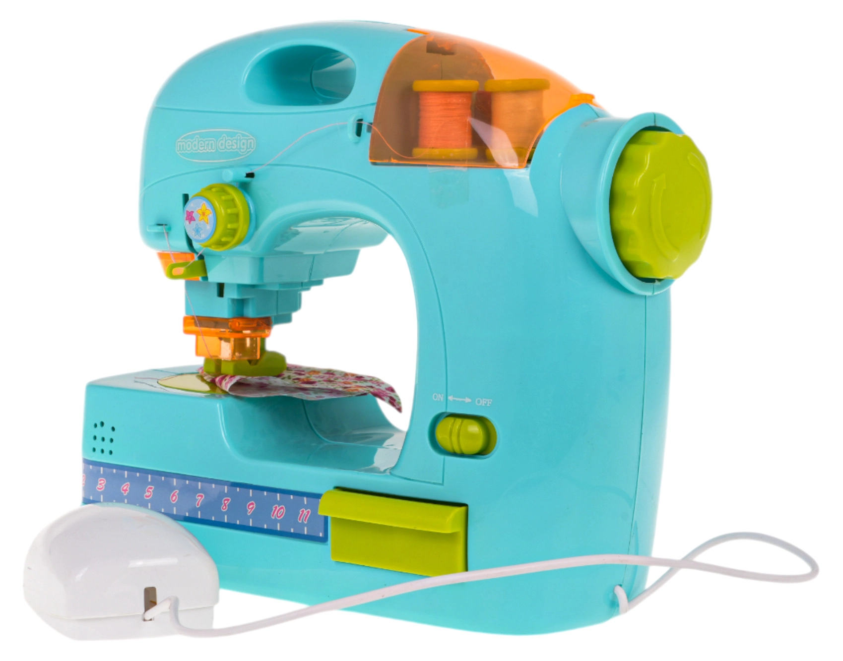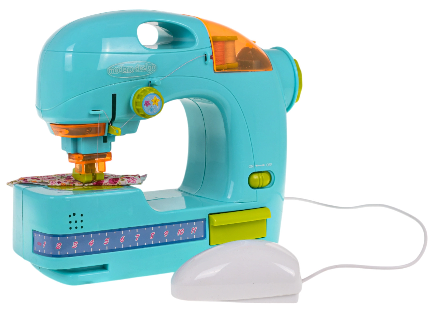 Μιμείται τη λειτουργία πραγματικής ραπτομηχανής, με κρυμμένη βελόνα για την ασφάλεια των παιδιών.
