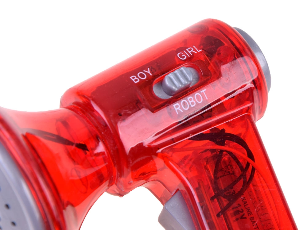 Ο αλλοιωτής φωνής τροφοδοτείται από 1x12V μπαταρία (περιλαμβάνεται στη συσκευασία) και ο εργονομικός σχεδιασμός του τον καθιστά εύχρηστο ακόμη και για μικρότερα παιδιά. Το ελαφρύ πλαστικό περίβλημα εγγυάται ασφάλεια και εύκολο χειρισμό.